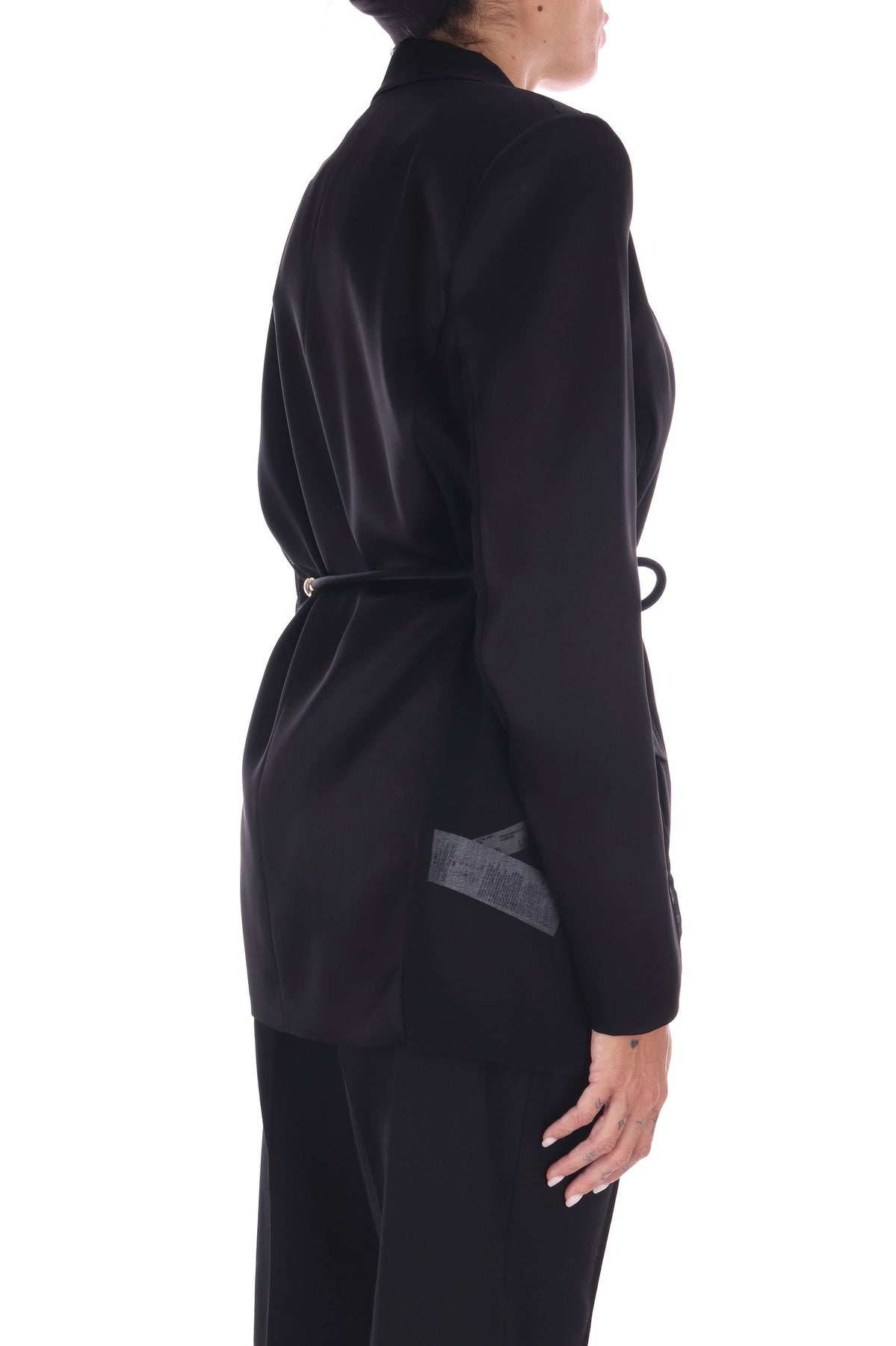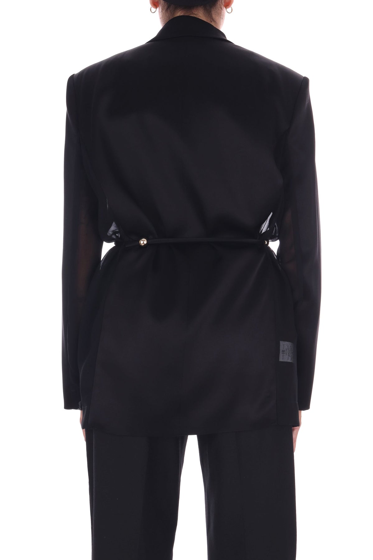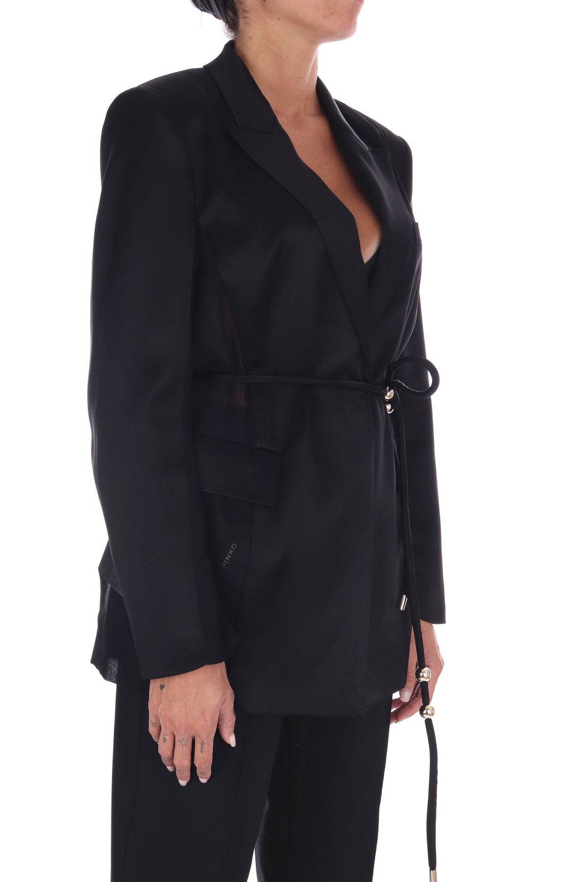 Blazer sfiancato unisce eleganza e modernità con dettagli raffinati. Le tasche frontali e la cintura in stile trekking con boule di metallo definiscono la vita, mentre le trasparenze su corpo e maniche aggiungono un tocco di sensualità discreta. Il raso lucido dona una brillantezza unica e una morbidezza al tatto, rendendo il capo perfetto per dare risalto a ogni outfit da occasione speciale. Un must-have essenziale per chi desidera distinguersi con stile.