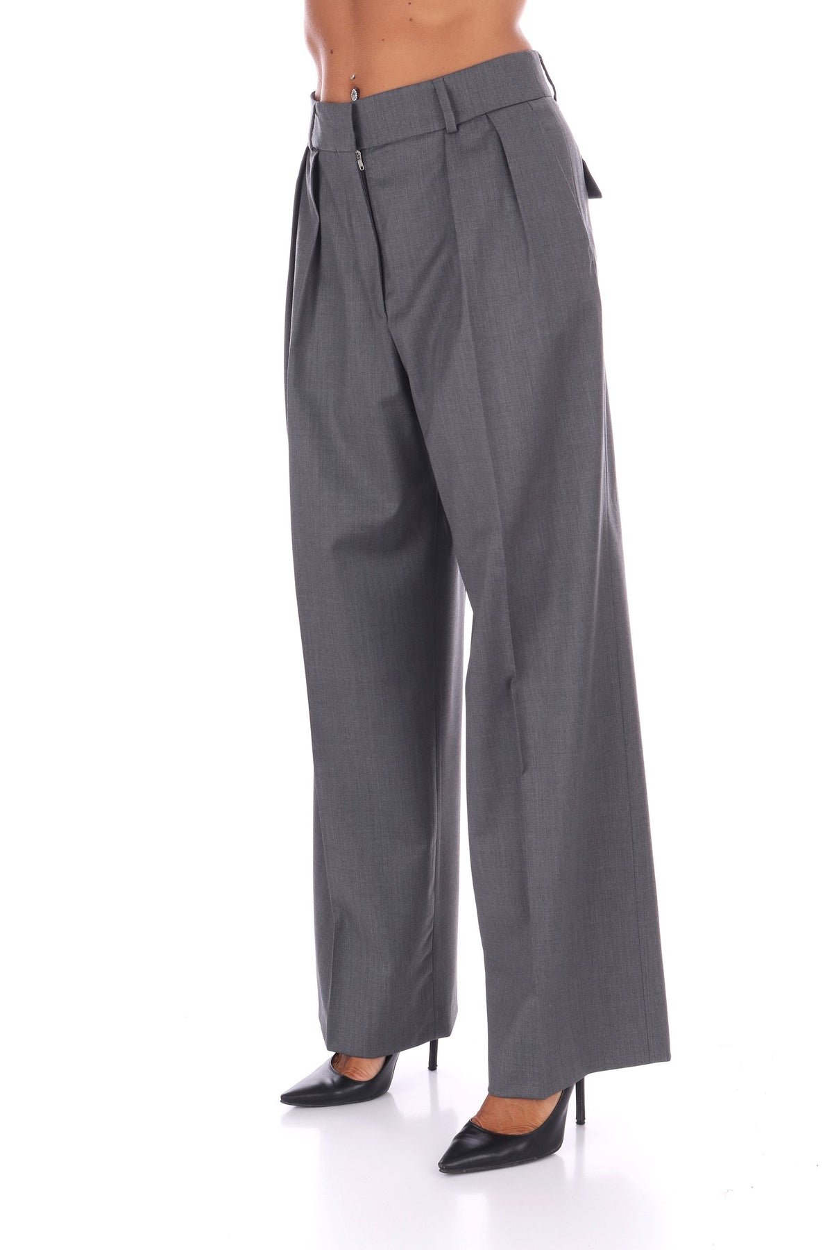 I pantaloni in lana leggera si distinguono per la vestibilità maschile ampia che garantisce comfort e stile sofisticato. La vita regolare con chiusura a linguetta e gancio, insieme ai passanti per cintura e doppie pinces, assicura una vestibilità curata e raffinata. Le tasche alla francese sul davanti e quelle a patta sul retro completano il design con praticità ed eleganza, rendendo il capo perfetto per un look contemporaneo e distintivo.