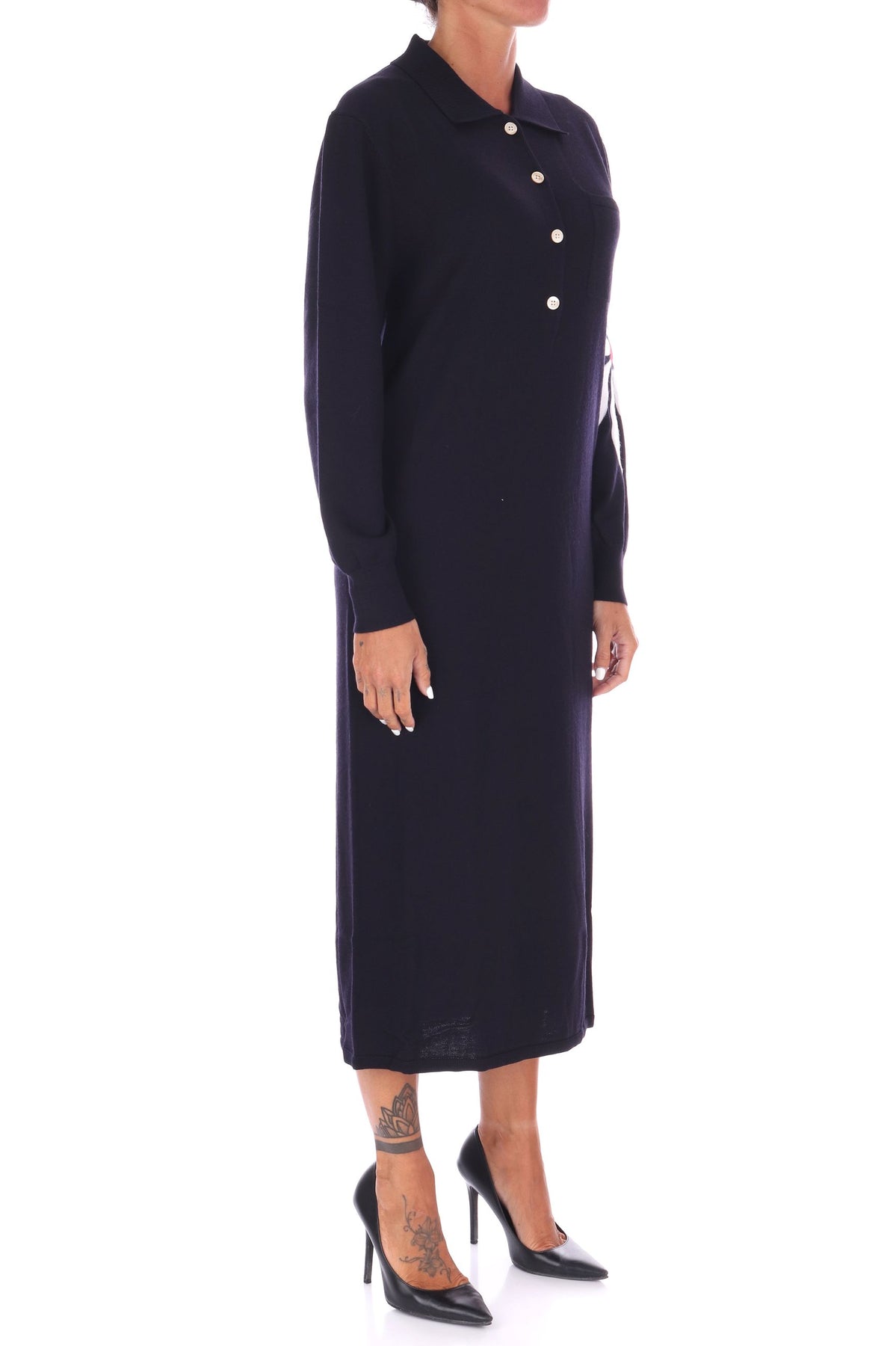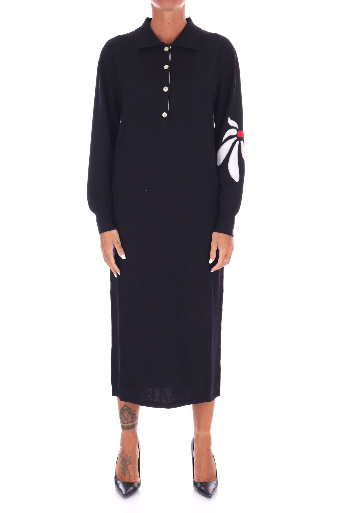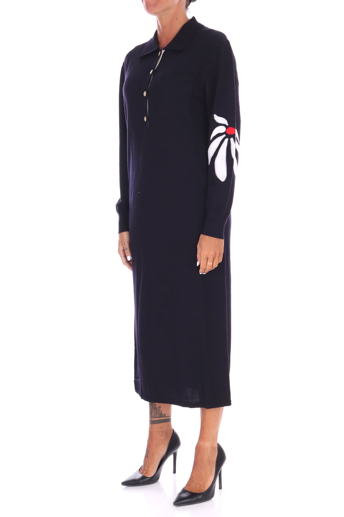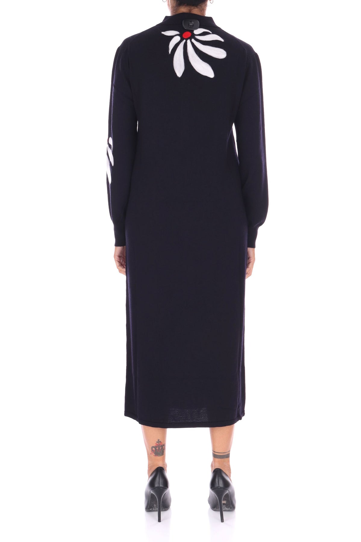 Abito midi realizzato in 100% lana offre una silhouette sofisticata, impreziosita da un colletto polo e da una chiusura frontale con bottoni a vista. Le maniche lunghe e una pratica tasca sul petto aggiungono un tocco di raffinatezza, mentre i grandi e vivaci fiori ricamati aggiungono un tocco di colore e fascino unico al tuo guardaroba. Perfetto per un look raffinato e lussuoso e confortevole. La modella indossa una Tag S