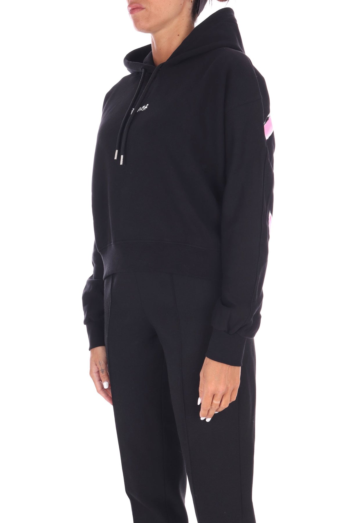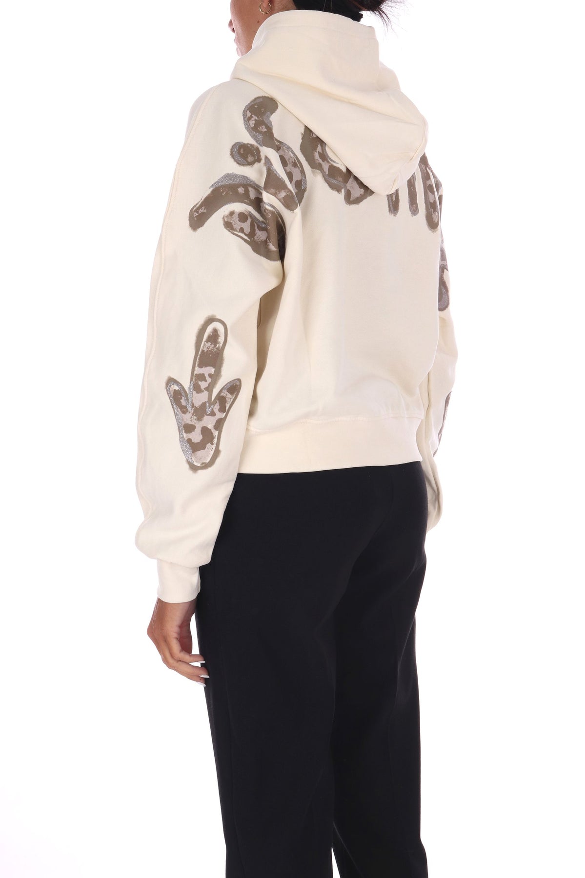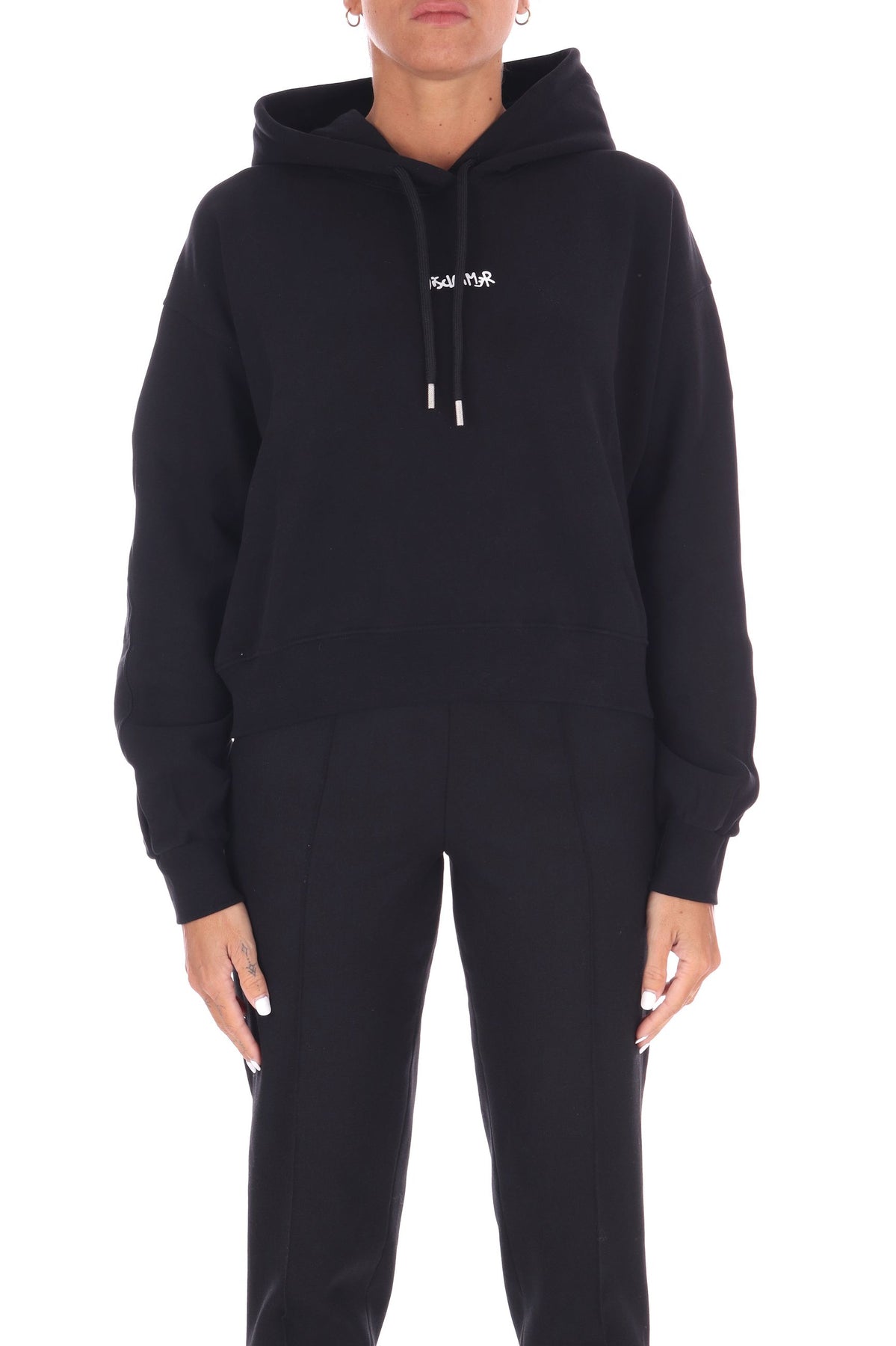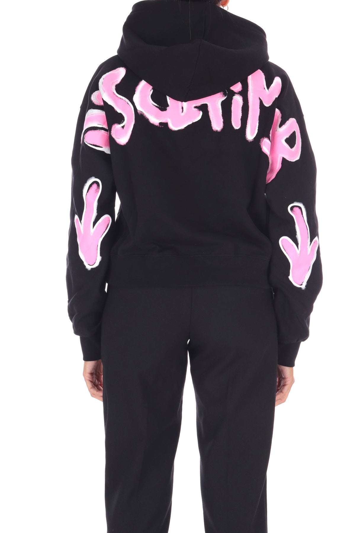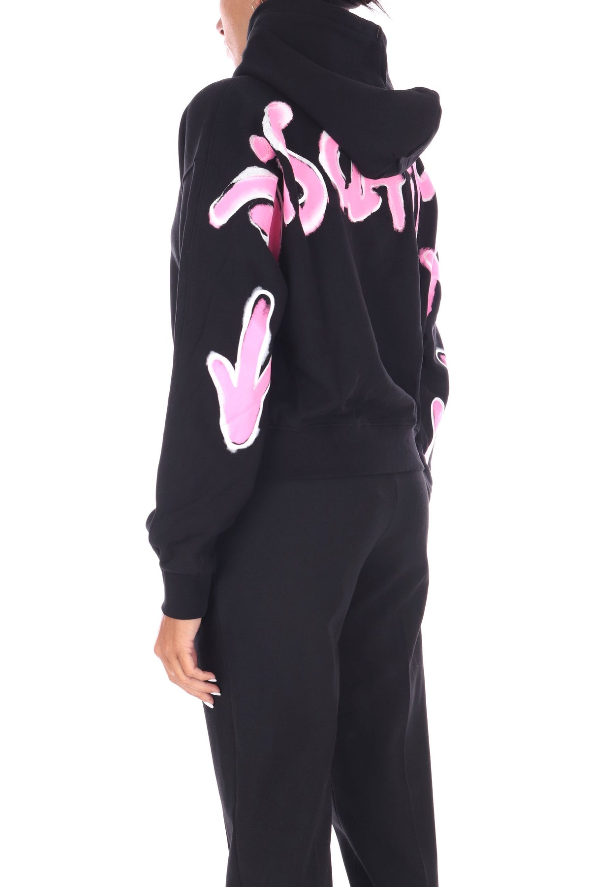 Felpa con cappuccio dalla vestibilità over, caratterizzata da un logo scritto a contrasto di colore sul retro che aggiunge un tocco audace e moderno, ideale per chi ama uno stile comodo ma distintivo.