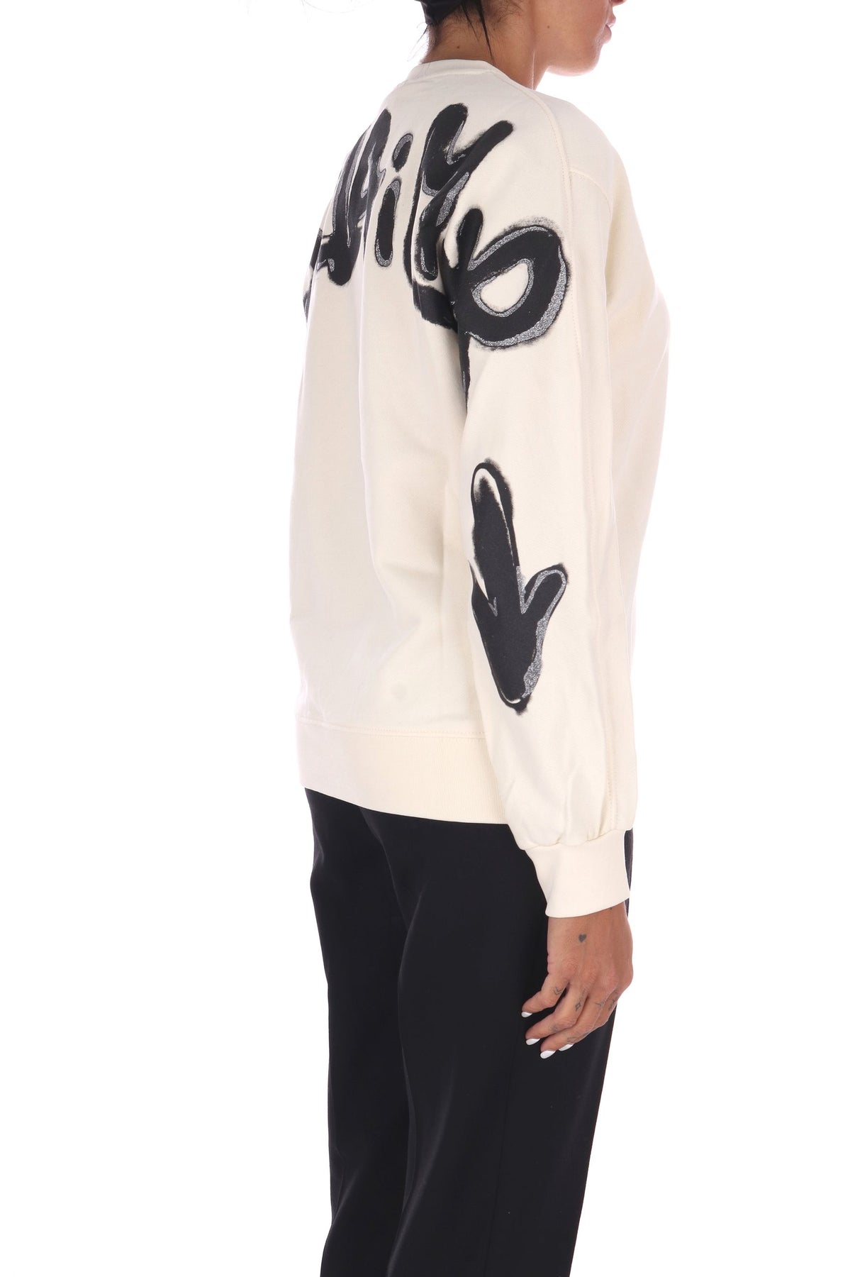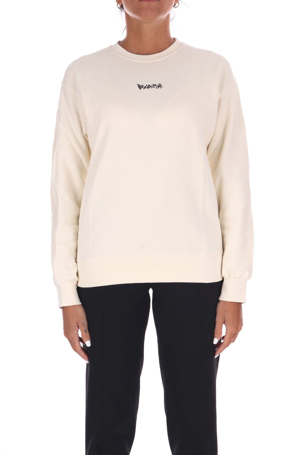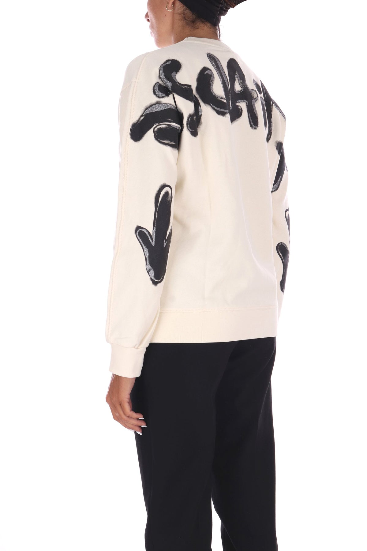 La felpa garzata con scollo tondo offre una vestibilità regolare ideale per un comfort quotidiano senza rinunciare allo stile. Il logo scritto con profili glitterati sul retro, in contrasto di colore, aggiunge un tocco brillante e sofisticato che distingue il capo con eleganza e personalità. Perfetta per chi desidera un look sportivo ma originale. La modella indossa una Tag S