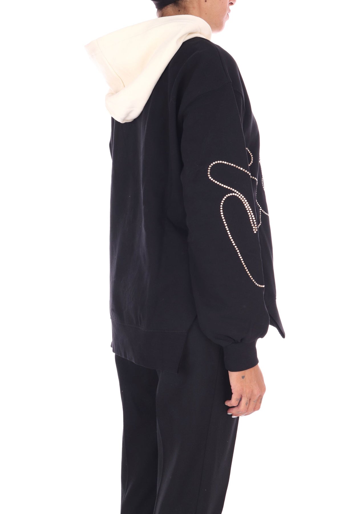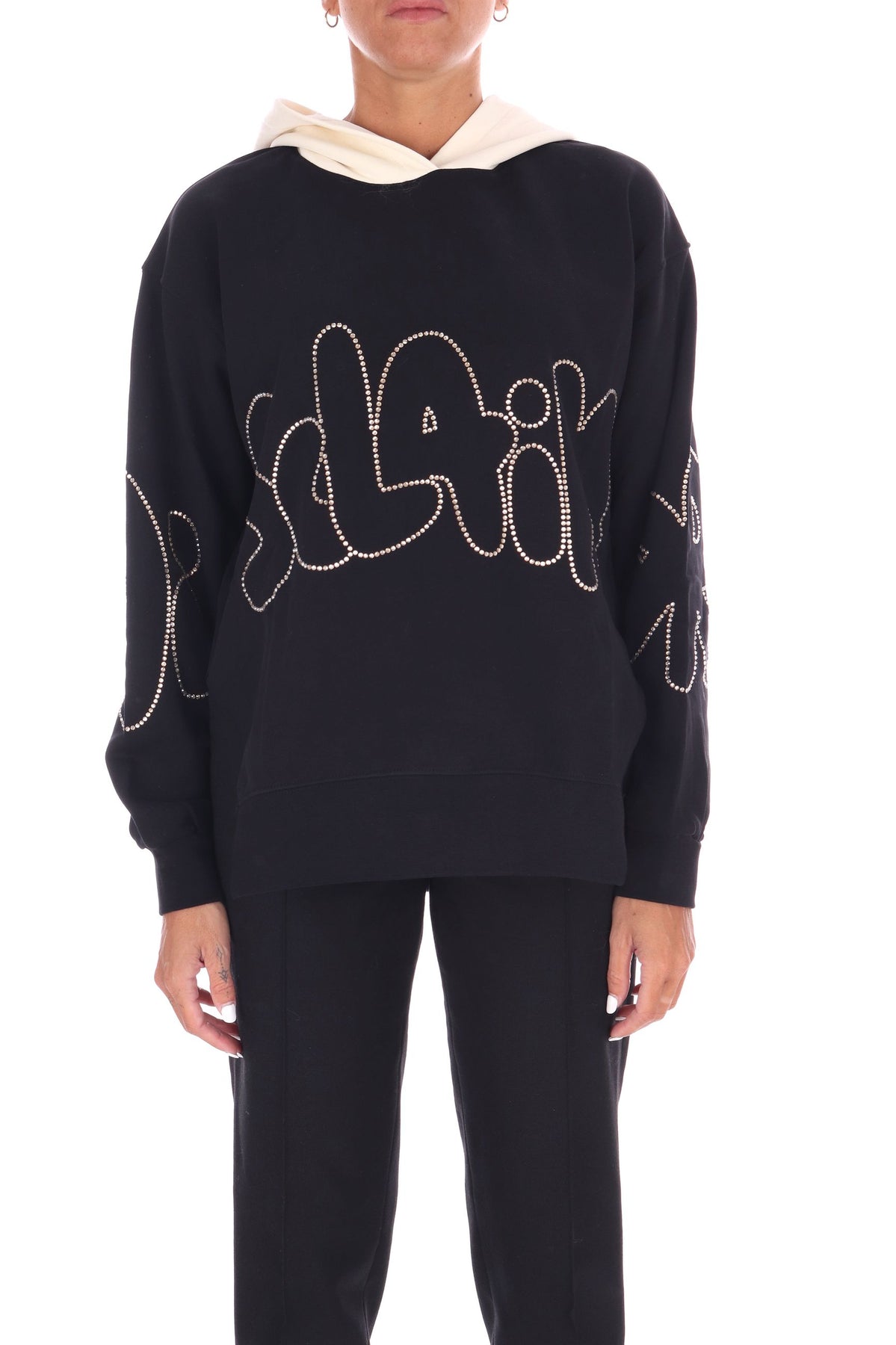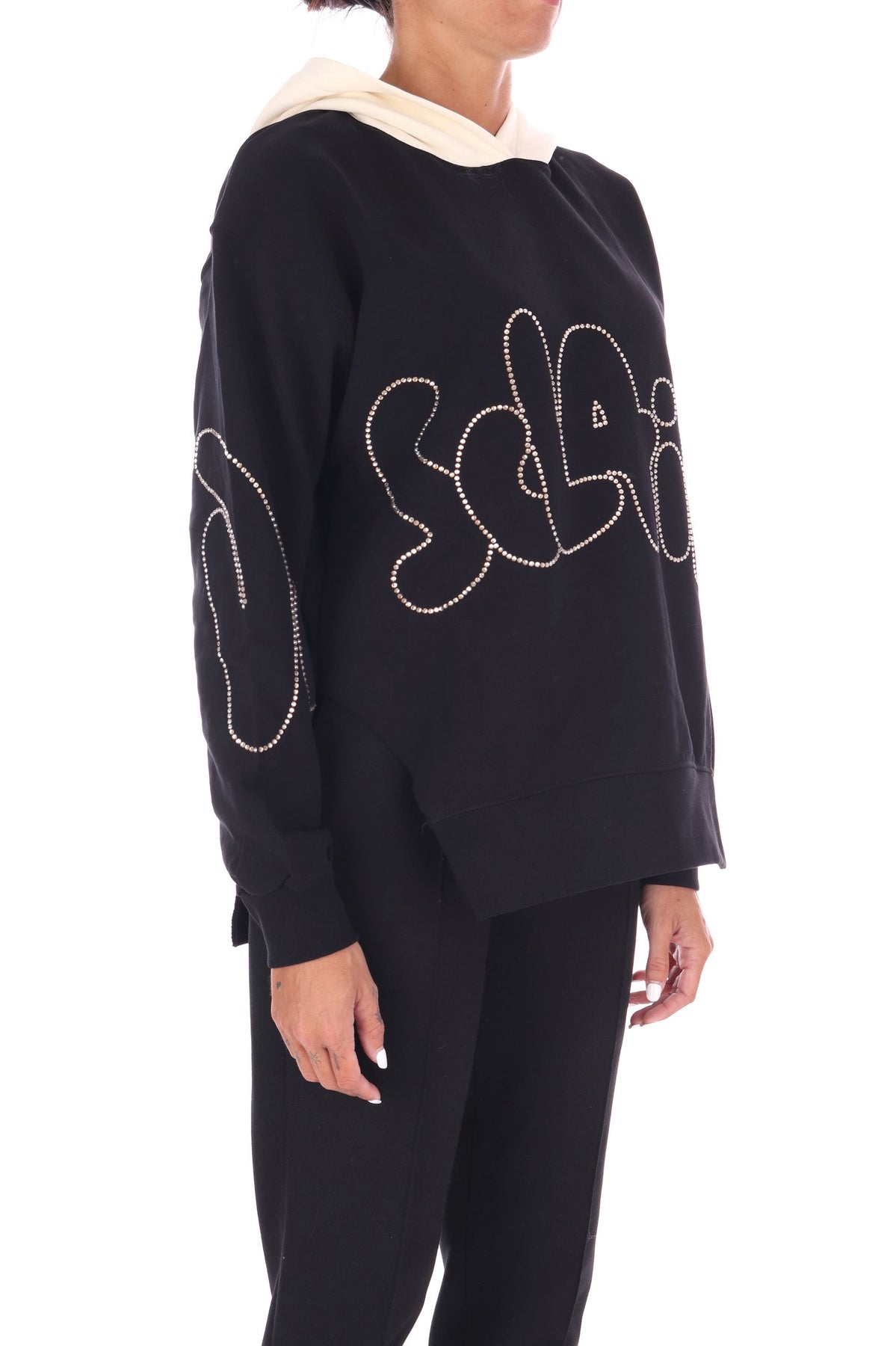 Felpa con cappuccio caratterizzata da dettagli a contrasto e logo frontale impreziosito da strass. La vestibilità fluida assicura massimo comfort e stile in ogni occasione.