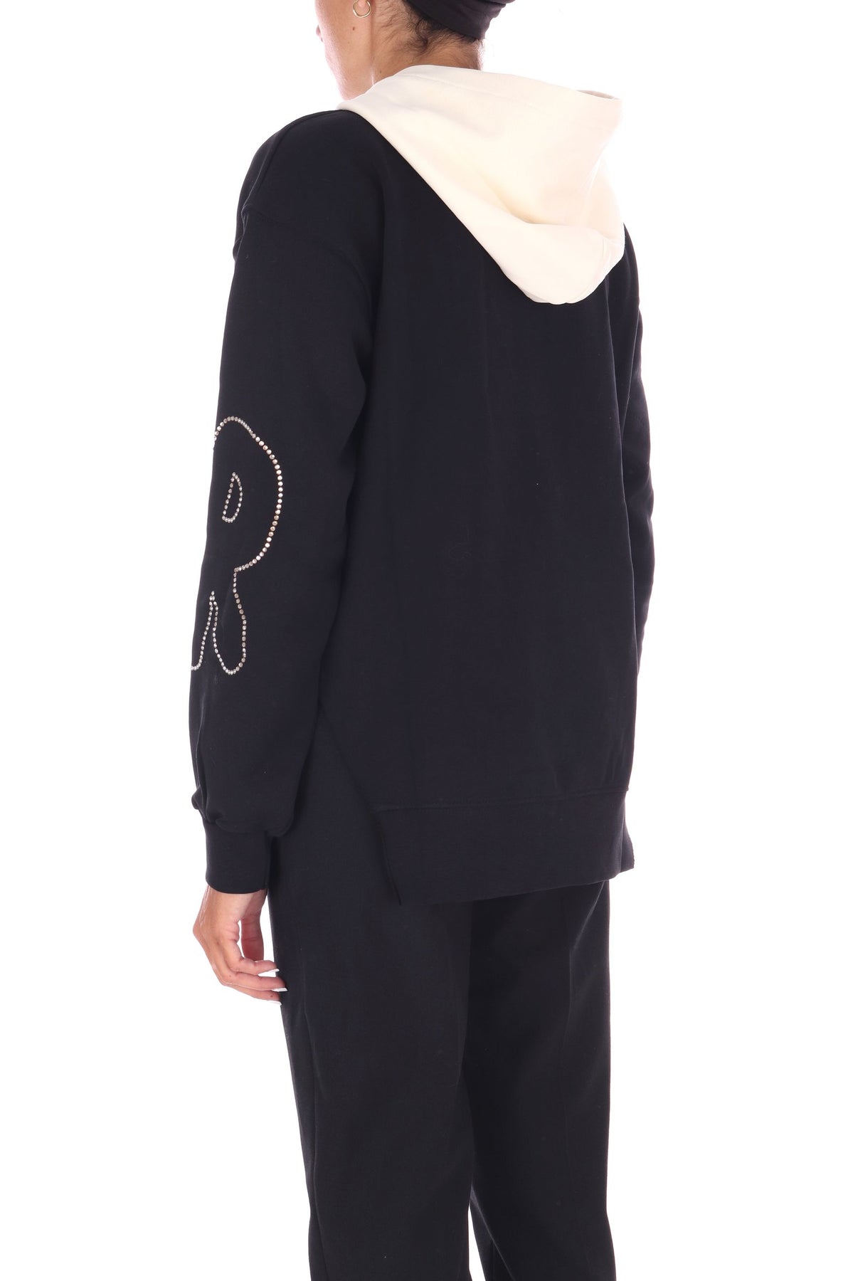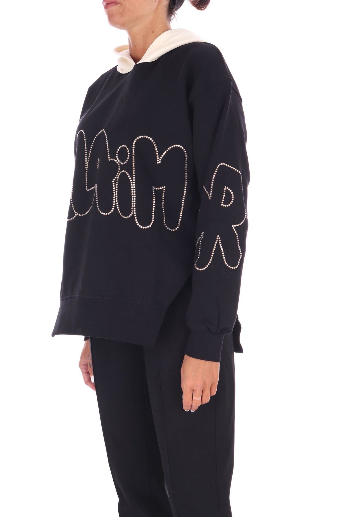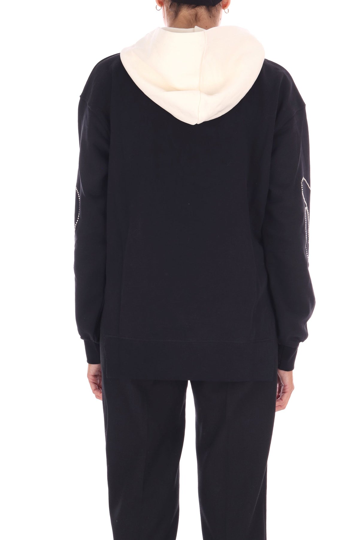 Felpa con cappuccio caratterizzata da dettagli a contrasto e logo frontale impreziosito da strass. La vestibilità fluida assicura massimo comfort e stile in ogni occasione.