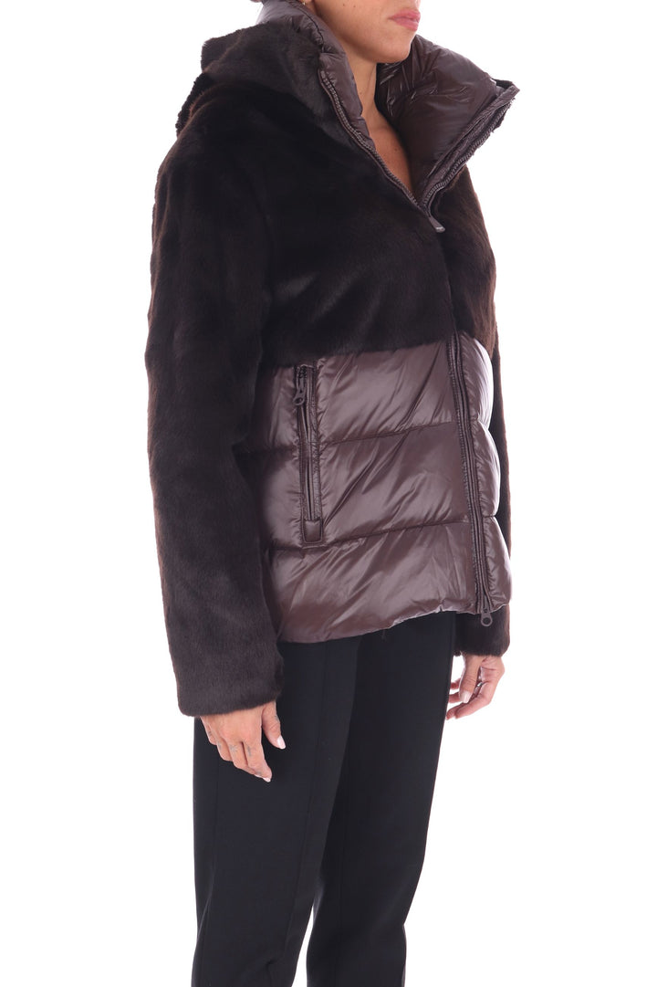 Giubbotto con cappuccio fisso in eco pelliccia unisce sostenibilità e comfort. Realizzato in nylon con fodera lucida tono su tono, è imbottito con ovatta Sorona® Aura per offrire calore leggero e traspirante. La chiusura con zip, le tasche con zip e copri cursore garantiscono praticità e sicurezza, mentre il fondo manica doppio con elastico interno e la coulisse sul fondo permettono una vestibilità su misura. Le tasche interne con velcro completano un capo versatile e funzionale, ideale per chi cerca stile e attenzione all’ambiente.