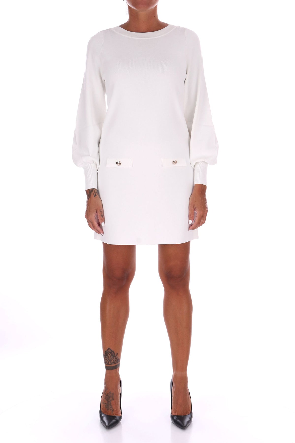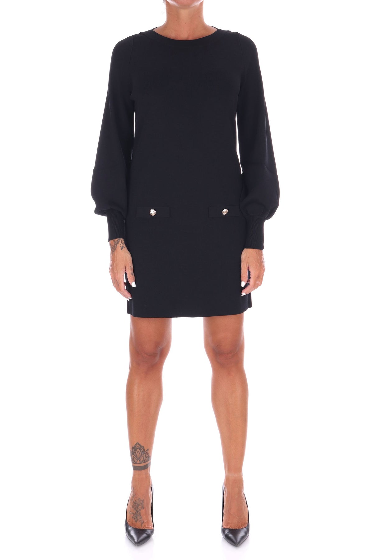 Questo abito corto in maglia di misto viscosa unisce eleganza e comfort grazie allo scollo a barca che esalta la linea del collo. Le maniche lunghe a palloncino aggiungono un tocco di stile sofisticato, mentre le pattine con bottone dorato logato conferiscono un dettaglio raffinato e distintivo. Perfetto per chi desidera un capo versatile e chic, adatto a molteplici occasioni.