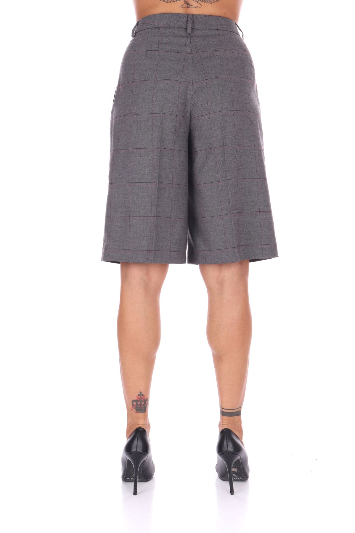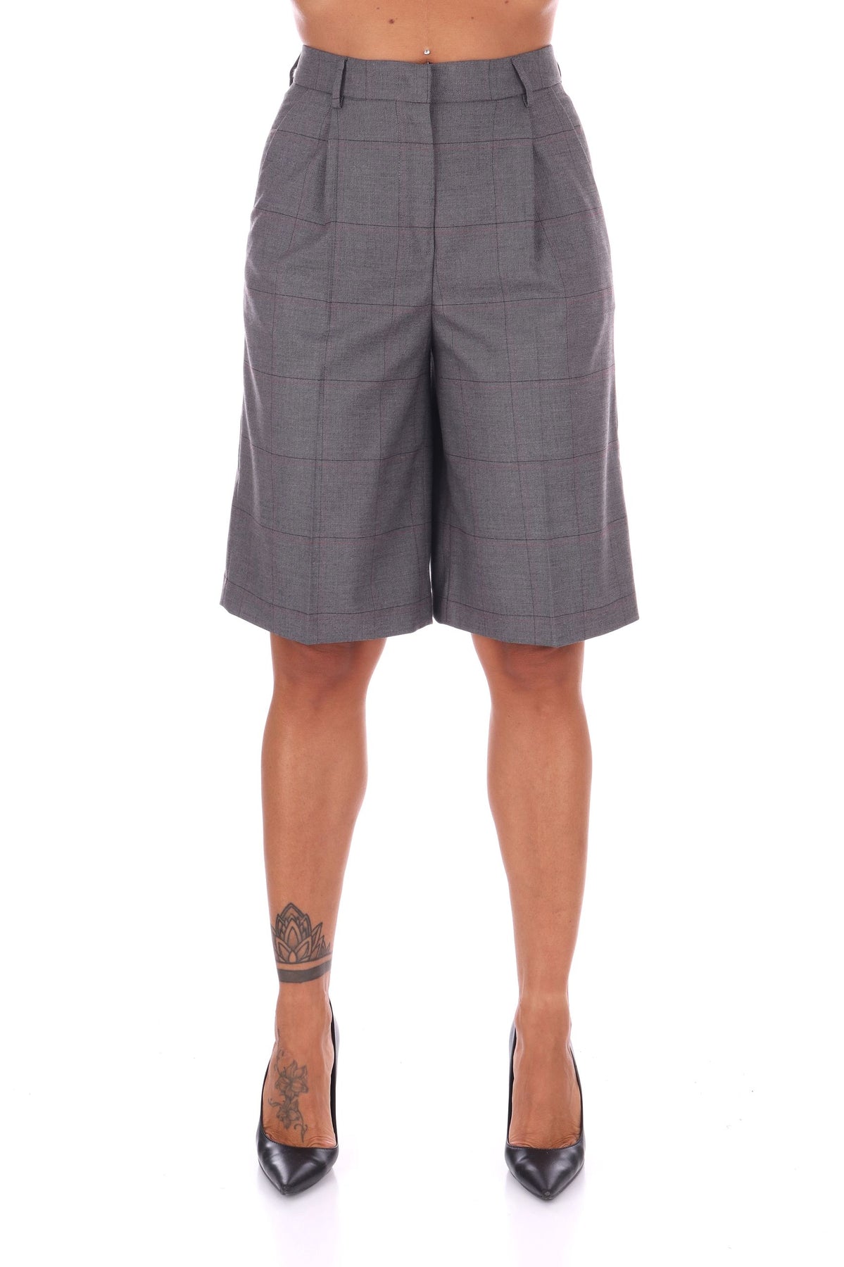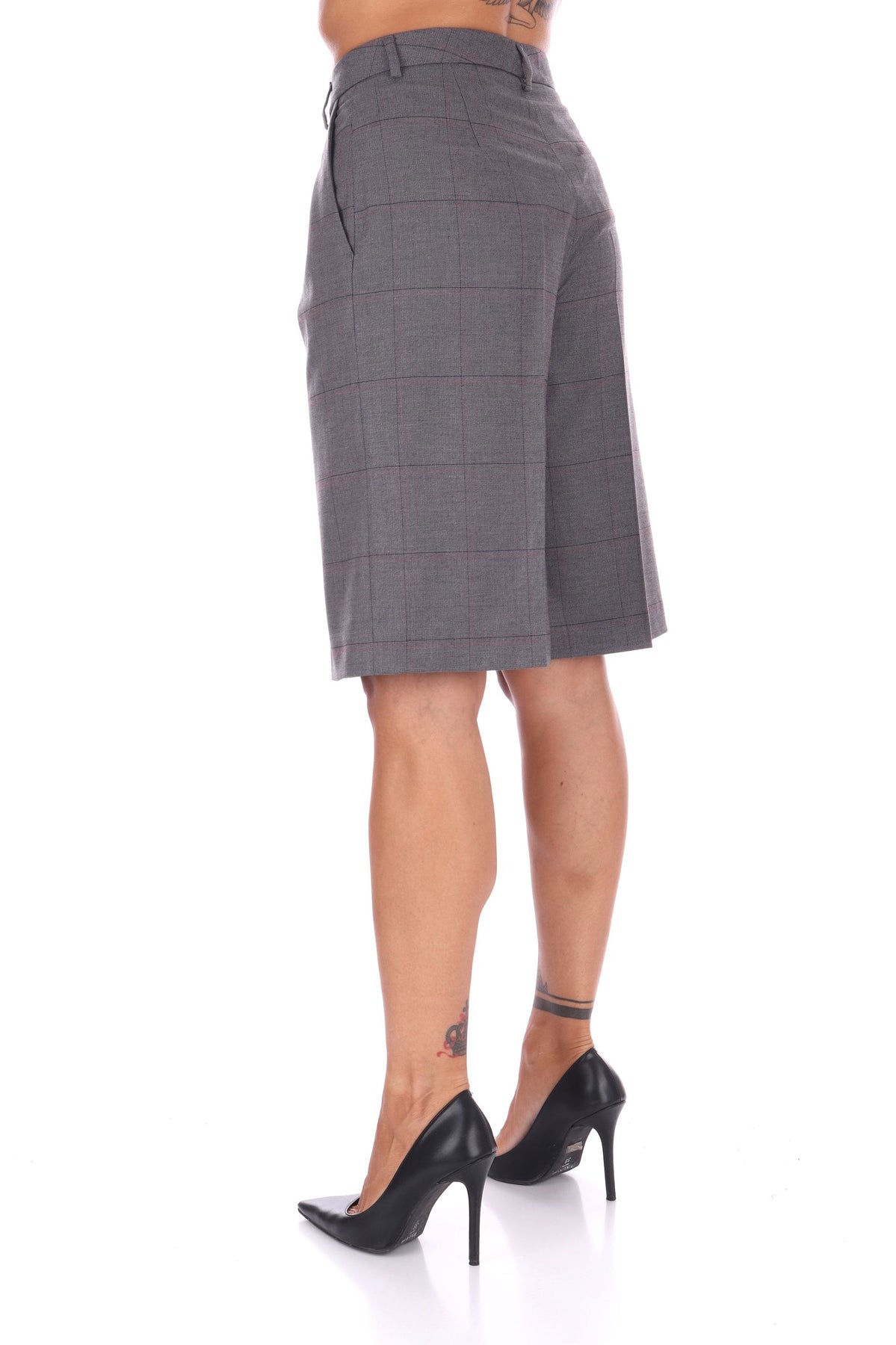 Questi shorts in tessuto a quadri offrono un’eleganza fresca e originale per il tuo look quotidiano. La piega stirata dona un aspetto curato, mentre la chiusura con zip nascosta garantisce una vestibilità pulita e confortevole. La linea regolare li rende versatili, perfetti per aggiungere stile senza sforzo alle tue giornate. La modella indossa una Tag 42 italiana