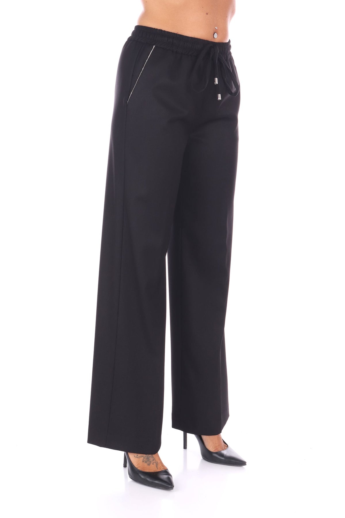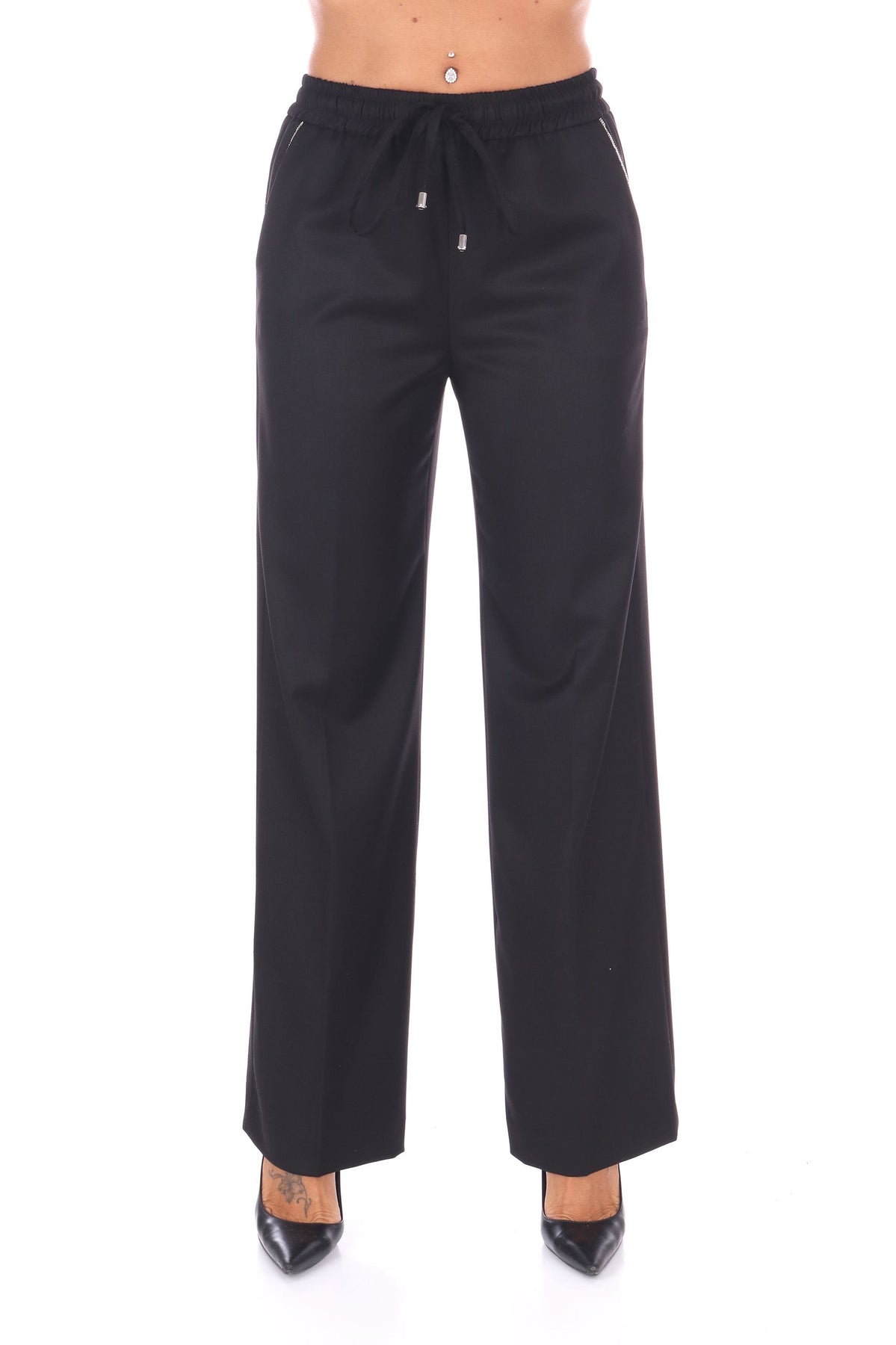 I pantaloni della capsule Pure Verve uniscono comfort e stile con una coulisse regolabile e fascia elasticizzata in vita. Il fit ampio, arricchito dalla piega stirata, garantisce libertà di movimento senza rinunciare a un tocco raffinato. Le pratiche tasche laterali completano un capo ideale per chi cerca eleganza rilassata in ogni occasione. La modella indossa una Tag XS