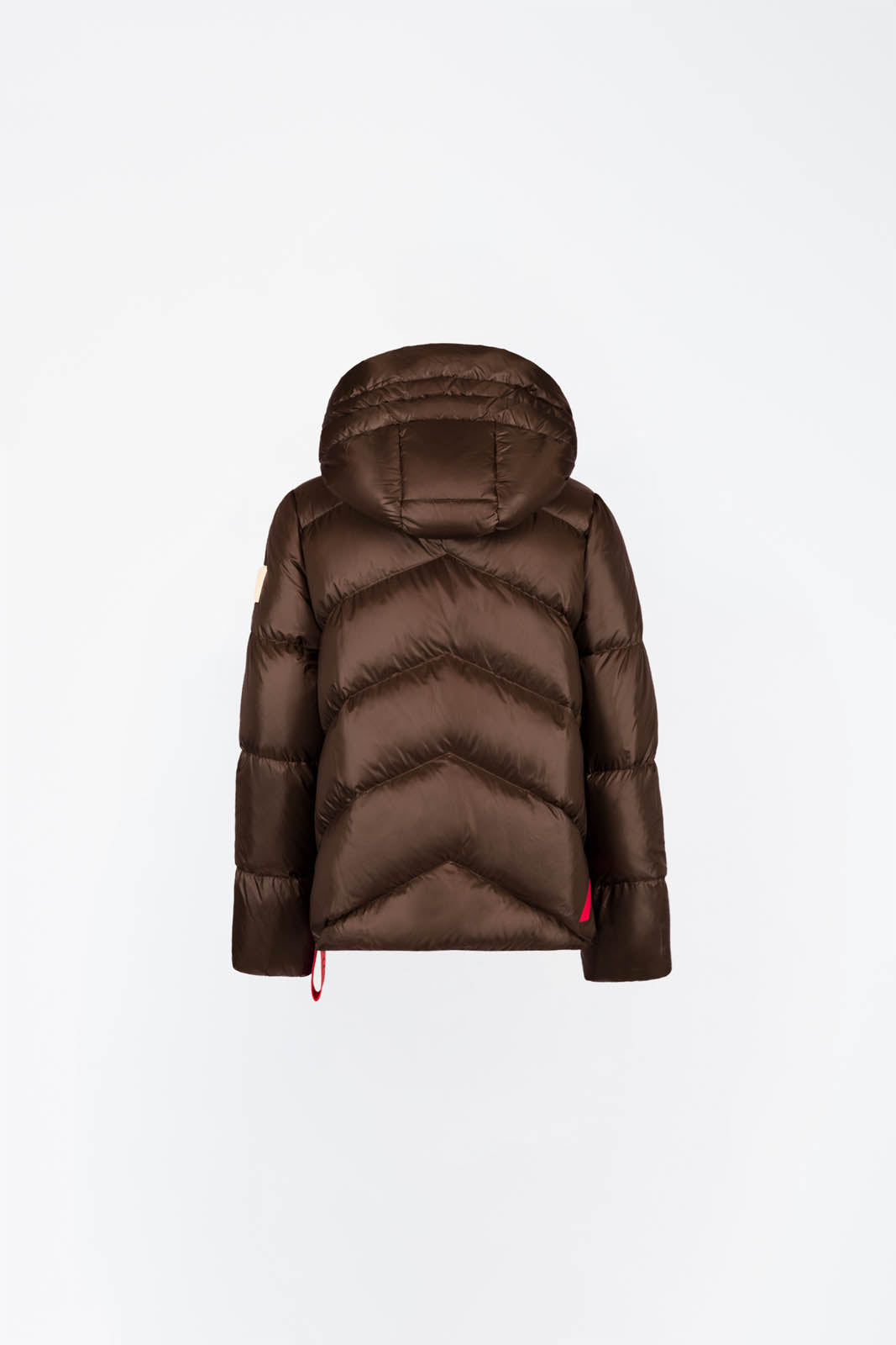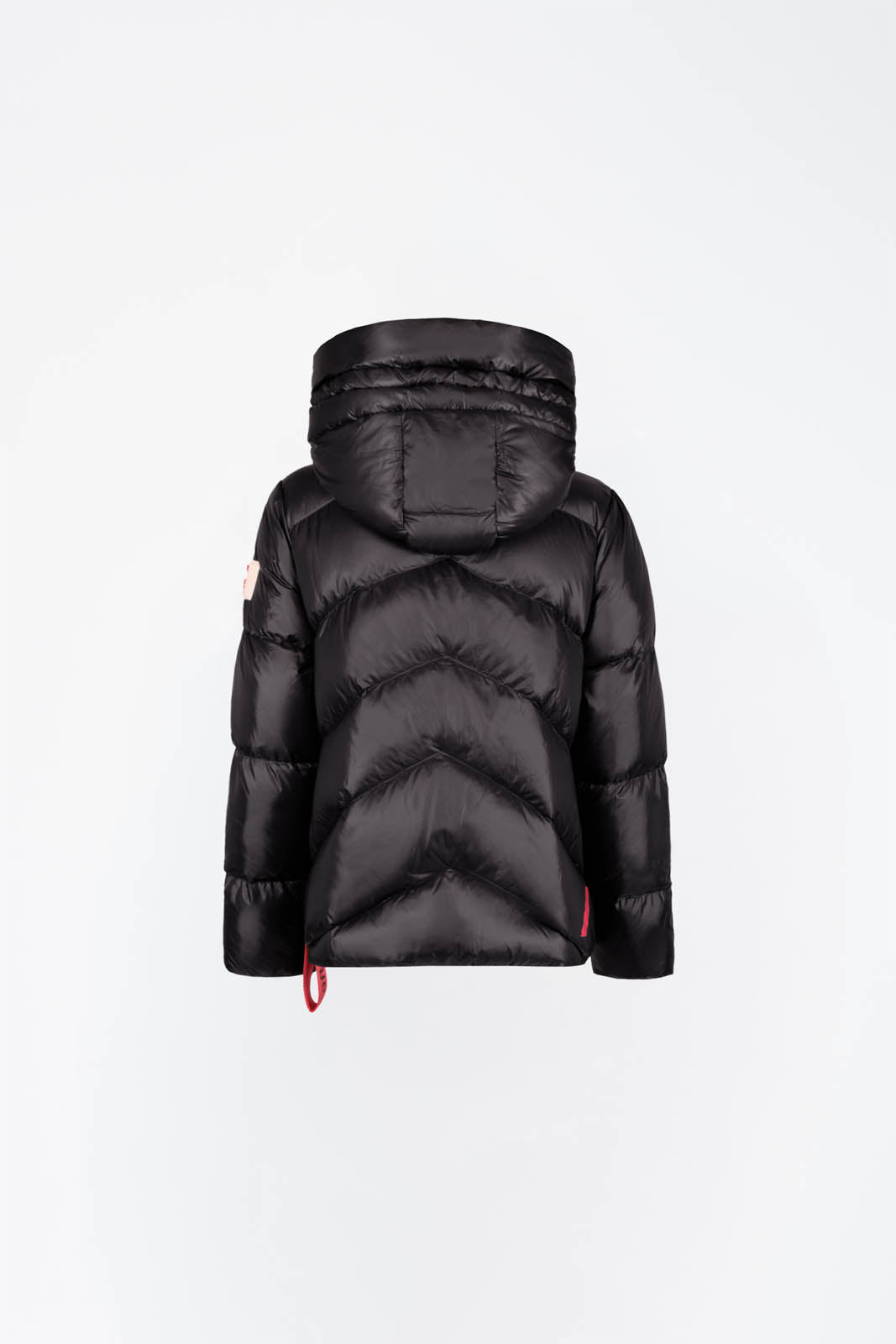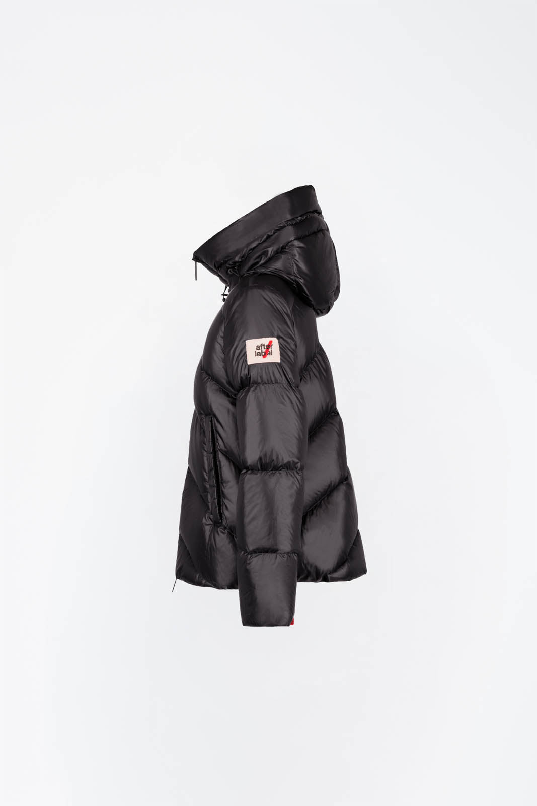 Questa giacca con imbottitura in piuma d’anatra (90% duck down, 10% piumino) offre calore e comfort superiori, ideale per le giornate fredde. Realizzata in nylon lucido, combina stile e resistenza. La chiusura a zip frontale e la doppia tasca con bottoni nascosti garantiscono praticità e sicurezza. Il collo alto con cappuccio regolabile assicura protezione extra, mentre i dettagli distintivi come il patch After label sulla manica sinistra, lo slash termoapplicato sul retro e il pendaglio rosso portalogo rendono il capo unico e riconoscibile. Perfetta per chi cerca funzionalità senza rinunciare al design.