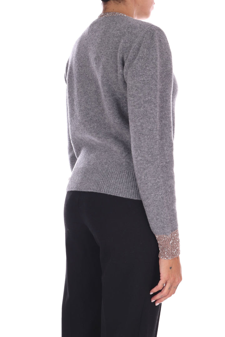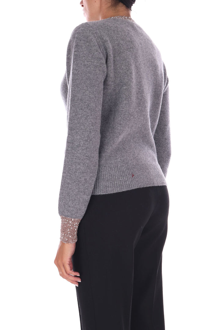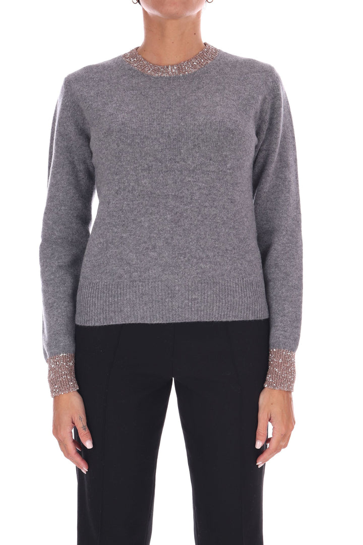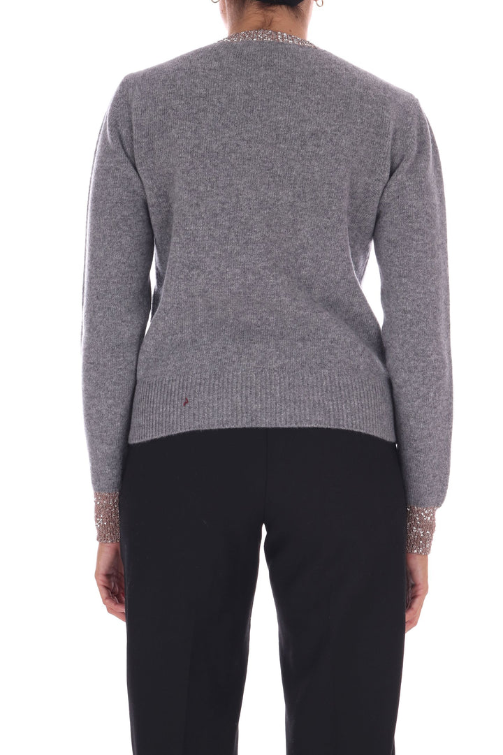 La maglia in lana con scollo tondo si distingue per i dettagli raffinati: fondo e scollo in punto elastico arricchiti da un filo di lurex a contrasto, che conferiscono un tocco luminoso e sofisticato. Un capo elegante e confortevole, perfetto per chi cerca stile e qualità in ogni dettaglio. La modella indossa una Tag S