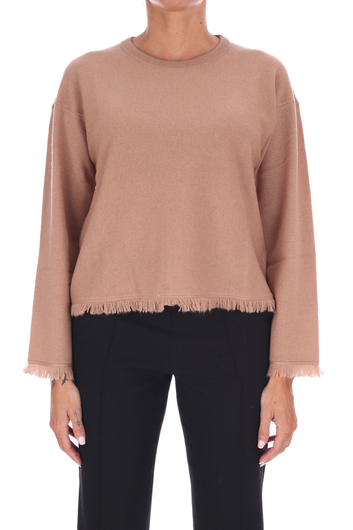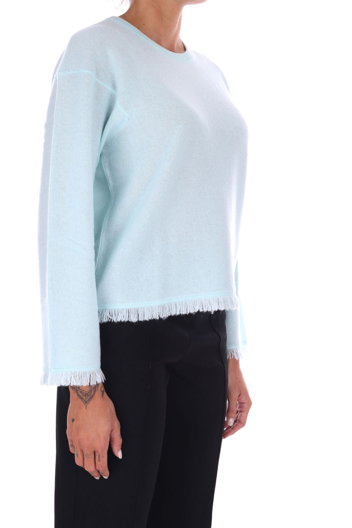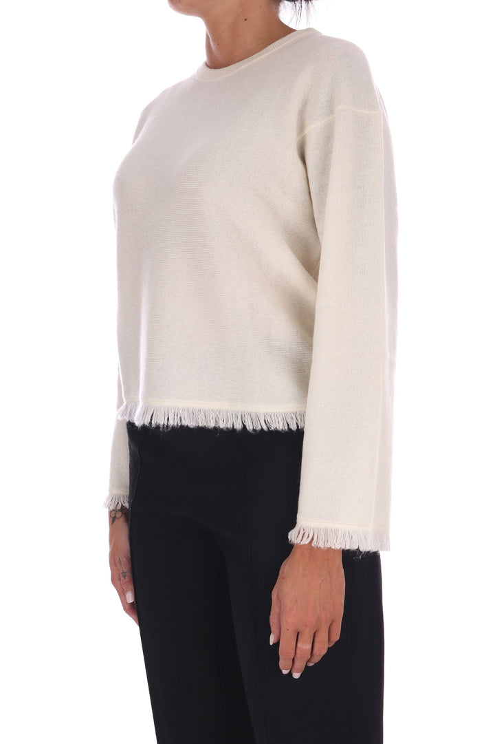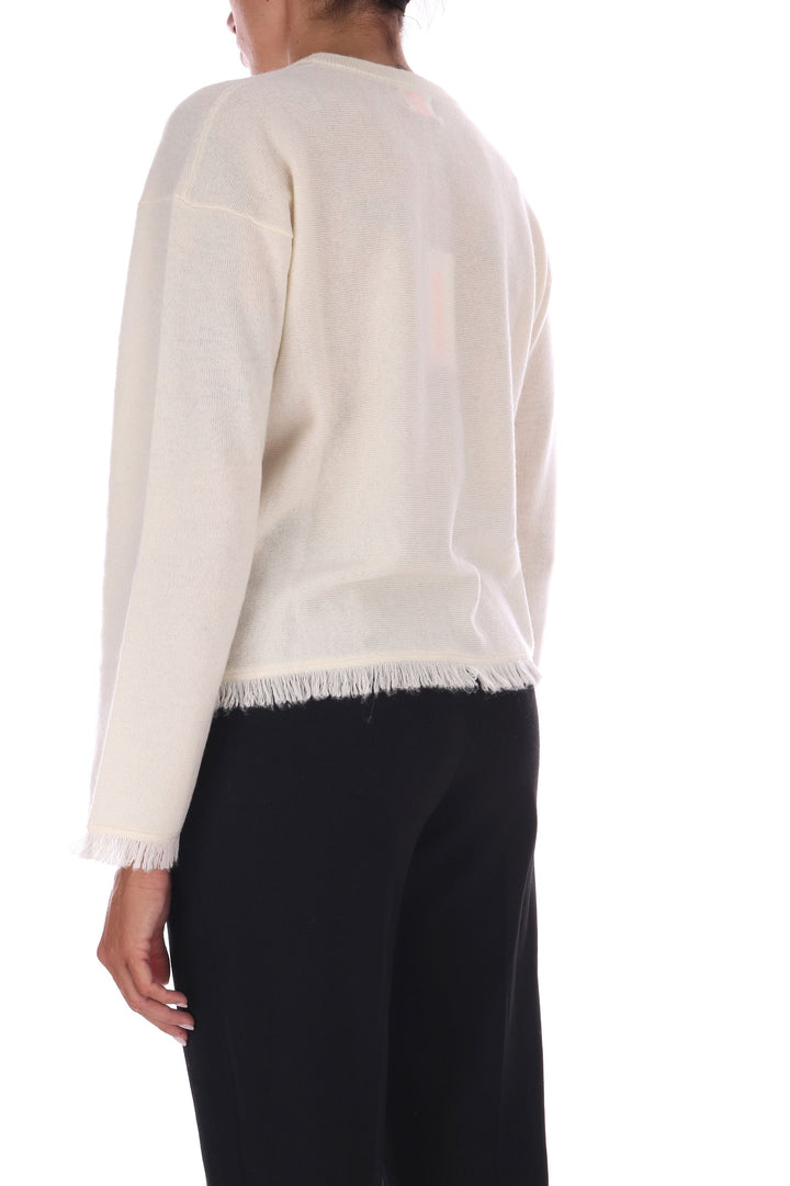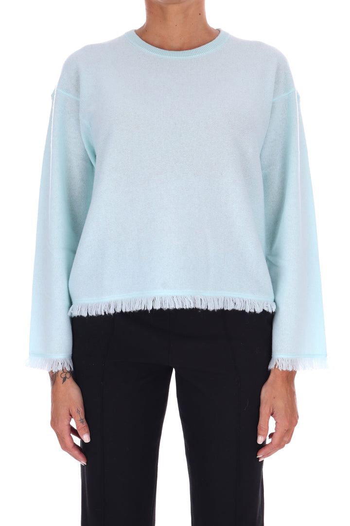 La maglia in lana e cashmere unisce calore e morbidezza, garantendo comfort e qualità superiori. Il scollo tondo valorizza ogni look, mentre l'effetto sfrangiato sul fondo dona un tocco di stile contemporaneo e originale. La vestibilità a scatola assicura una linea moderna e confortevole, ideale per chi cerca eleganza senza rinunciare a praticità e comfort. Perfetta per arricchire il tuo guardaroba autunnale con raffinata semplicità. La modella indossa una Tag S