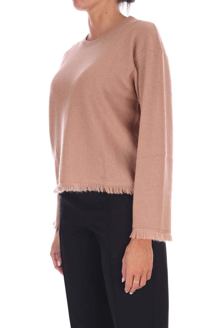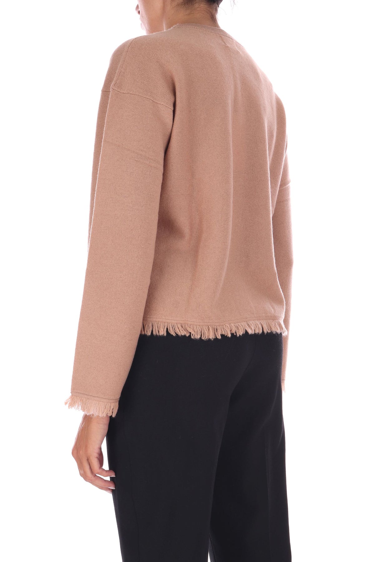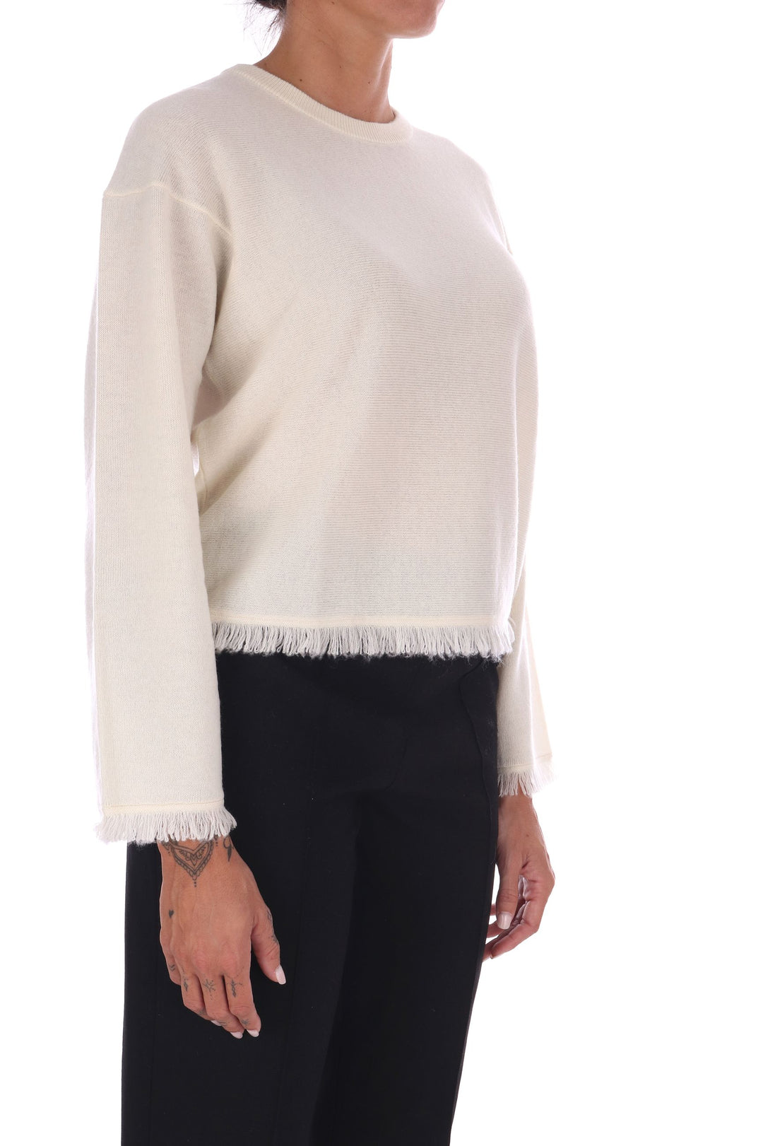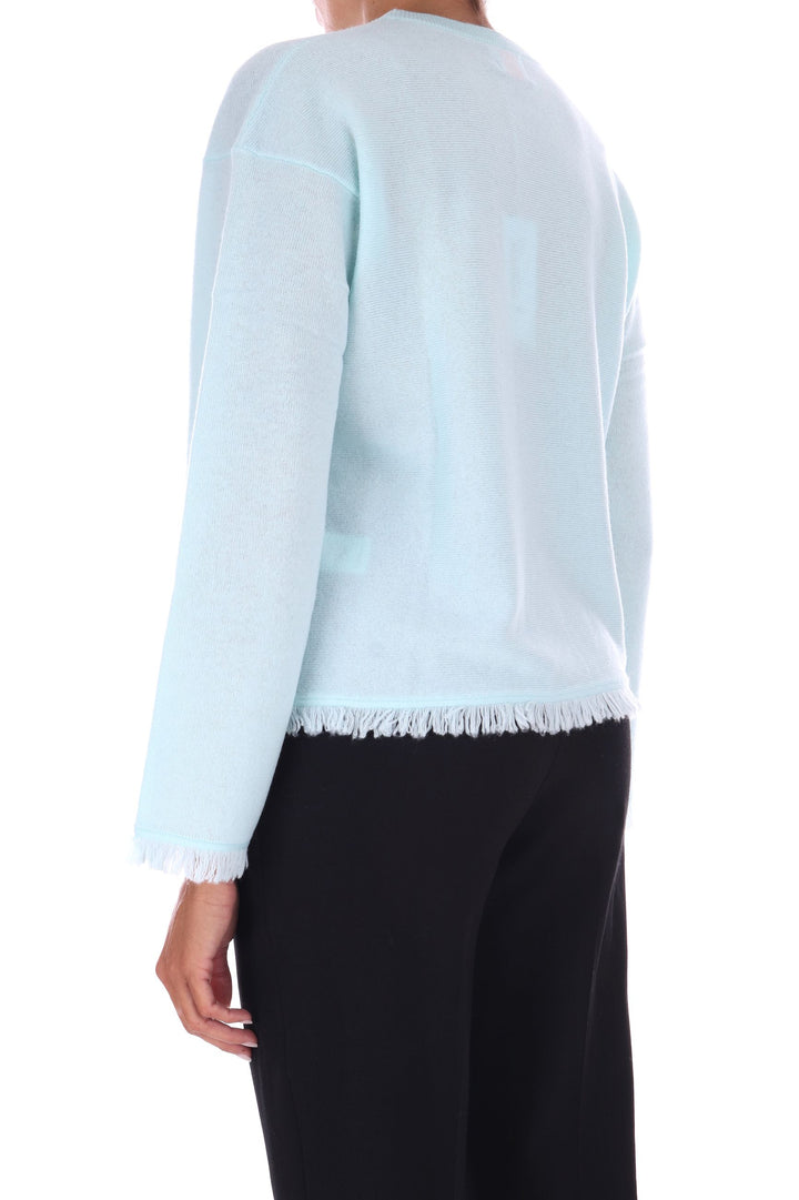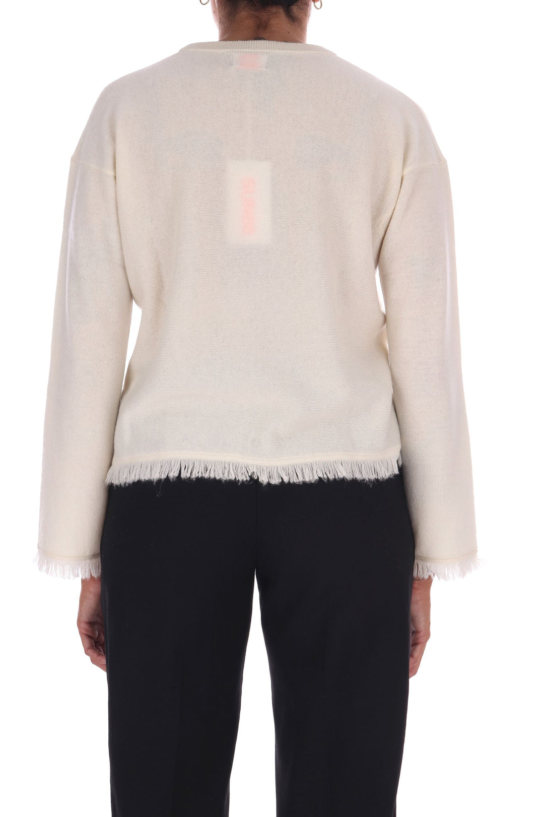 La maglia in lana e cashmere unisce calore e morbidezza, garantendo comfort e qualità superiori. Il scollo tondo valorizza ogni look, mentre l'effetto sfrangiato sul fondo dona un tocco di stile contemporaneo e originale. La vestibilità a scatola assicura una linea moderna e confortevole, ideale per chi cerca eleganza senza rinunciare a praticità e comfort. Perfetta per arricchire il tuo guardaroba autunnale con raffinata semplicità. La modella indossa una Tag S