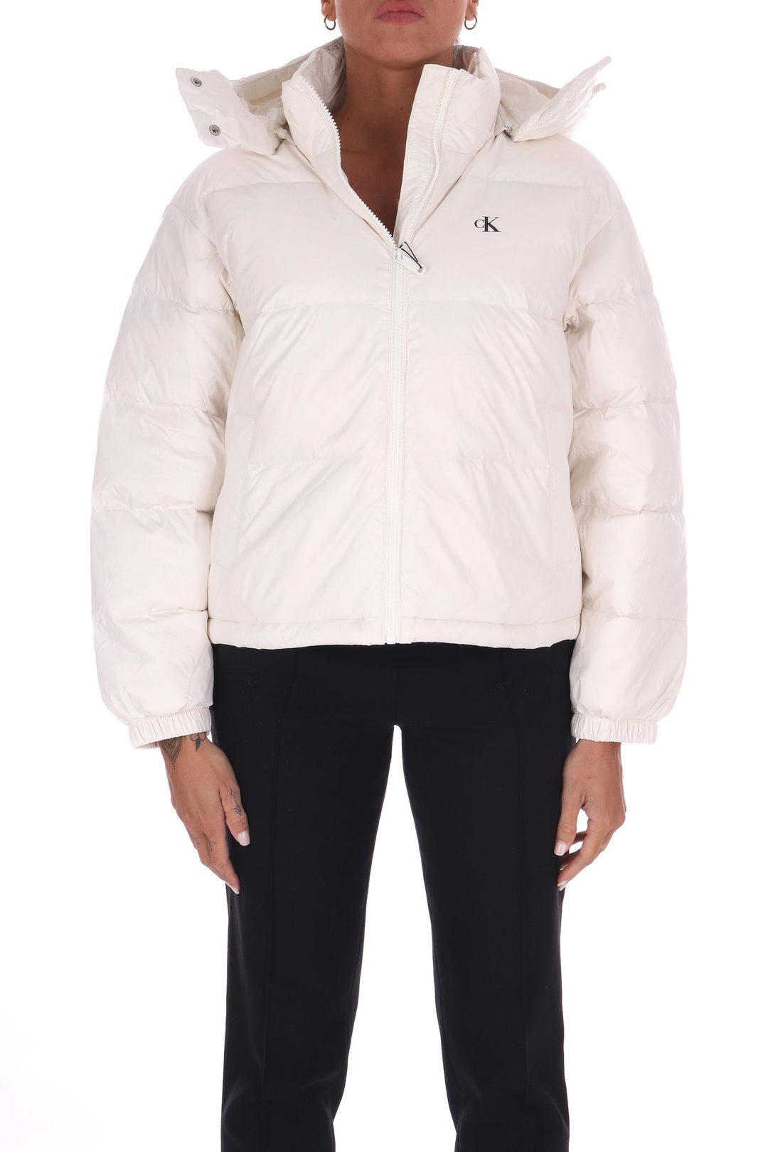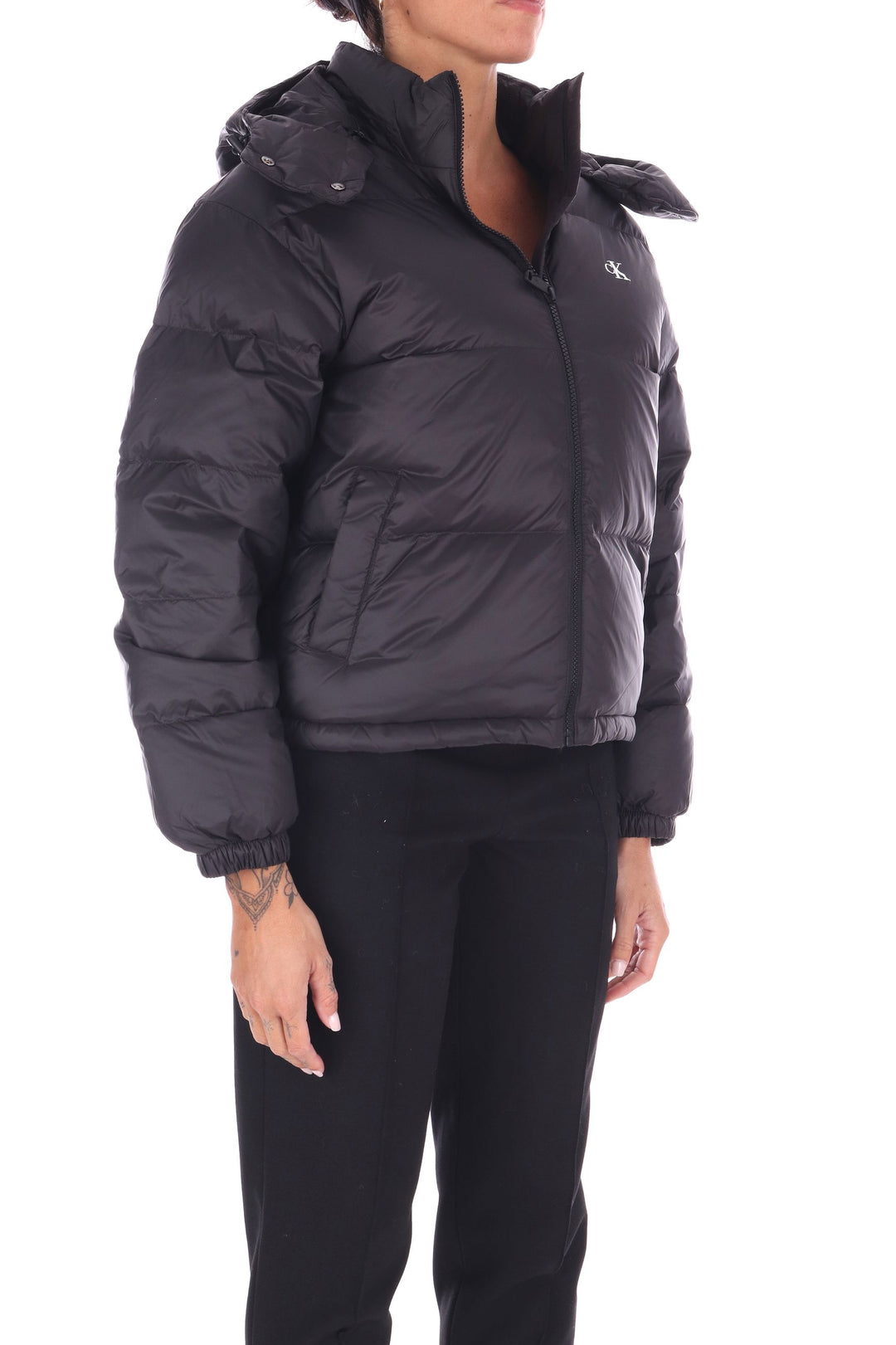 Piumino corto in morbido nylon offre protezione impermeabile e antivento, ideale per affrontare ogni condizione climatica. Il cappuccio staccabile e il bordo con coulisse e stopper garantiscono una vestibilità personalizzabile, mentre la chiusura con zip e le tasche a taglio in vita uniscono praticità e stile. L’imbottitura isolante di peso medio assicura calore senza appesantire. Il monogramma Calvin Klein stampato sul petto aggiunge un tocco distintivo, rendendo questo capo perfetto per chi cerca comfort e design contemporaneo. La modella indossa una Tag S
