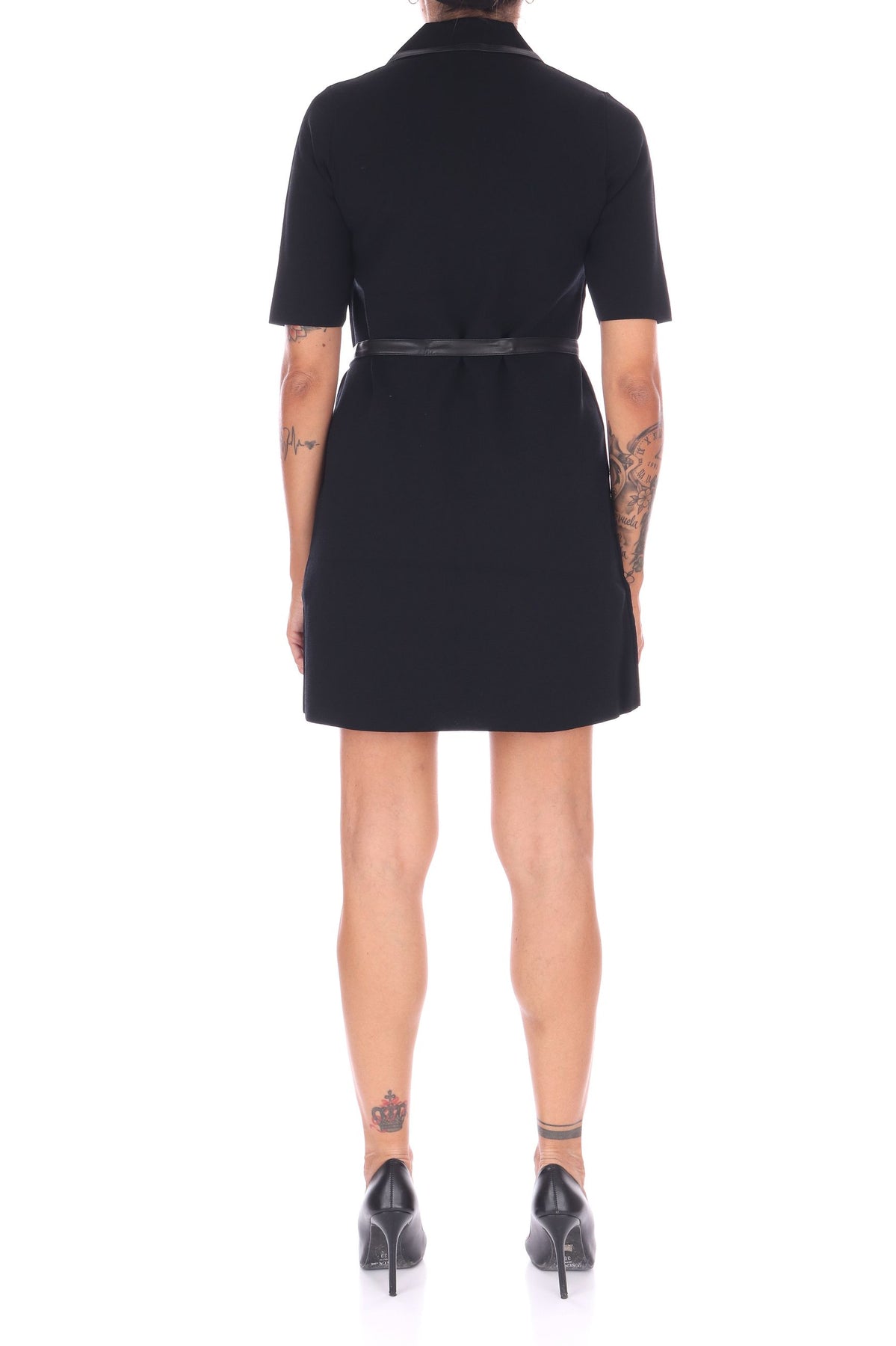 L'abito corto in maglia, realizzato con filati misto viscosa, offre un equilibrio perfetto tra comfort e stile. Il colletto con zip aggiunge un tocco moderno e pratico, mentre le maniche corte lo rendono ideale per le stagioni più calde. La cintura in tessuto spalmato valorizza la silhouette, conferendo un dettaglio raffinato. Un capo della linea "Liu Jo Better" che unisce eleganza e versatilità per ogni occasione. La modella indossa una Tag S