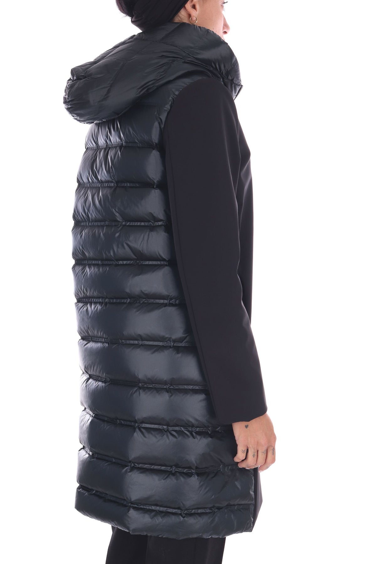 Questo parka invernale reinventa la tradizione con un’eleganza contemporanea. Il tessuto Montecristo super opaco su davanti e maniche crea un look sofisticato, mentre i canali tubici traslucidi sul retro e cappuccio rivelano l’imbottitura in piuma d’anatra, garantendo calore leggero e stile moderno. La lunghezza al ginocchio e il fit regolare assicurano comfort e versatilità, rendendo questo capo protagonista di ogni outfit invernale.