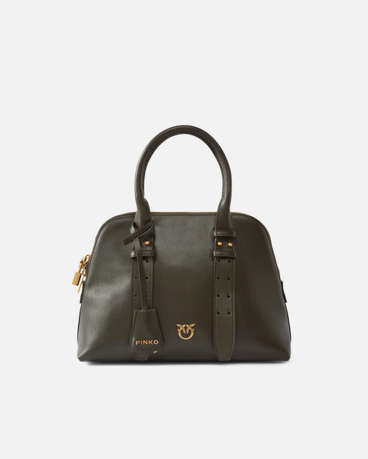 La Escape Bag modello bowling in morbida pelle è la compagna ideale per chi cerca stile e funzionalità. Con la tracolla regolabile e rimovibile e il doppio manico, si adatta facilmente a ogni occasione, da portare a mano o a spalla. Il lucchetto con chiave nel charm aggiunge sicurezza ed eleganza, mentre la chiusura a zip nasconde un interno foderato in cotone con tasca interna zip. Un accessorio versatile che unisce design raffinato e praticità quotidiana, firmato Love Birds.