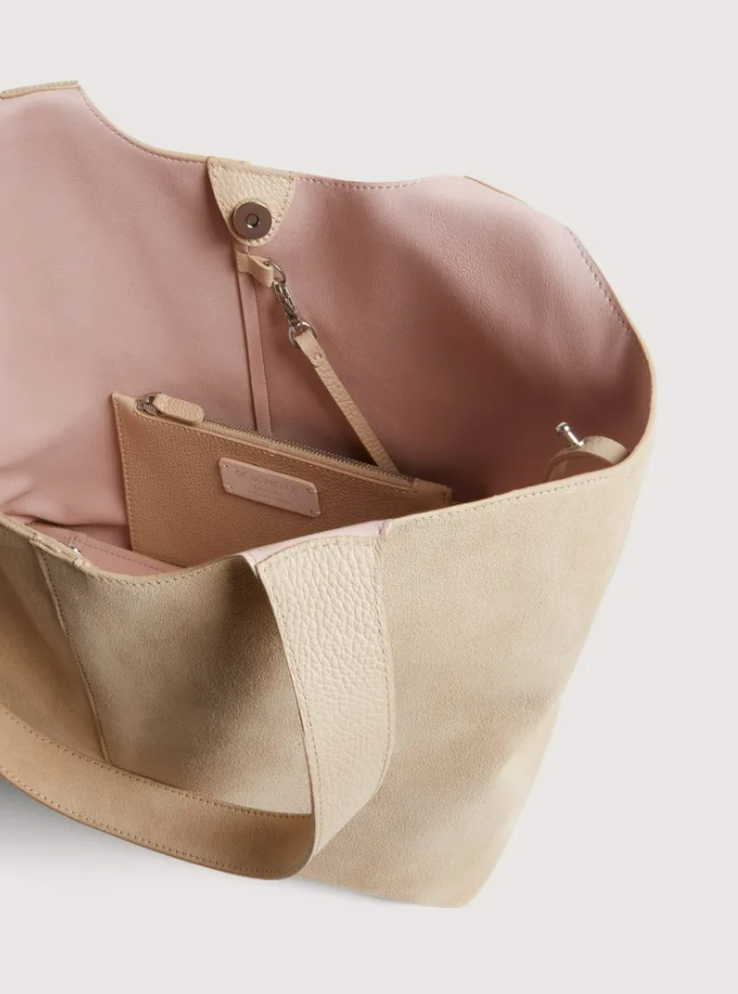 Coccinelle C-Me Dual: la borsa che si trasforma secondo il tuo umore. Camoscio morbido e pelle con grana si incontrano in un dialogo tattile irresistibile. Portala a spalla e scegli il tuo gioco: uno scomparto con bottone per la semplicità, oppure chiusura orizzontale con gemello per chi ama la complessità. La pochette removibile con zip ti segue ovunque. Dettagli in metallo—logo C-Me e letterine—brillano in galvanica shiny nickel come promesse non mantenute. Versatile, sofisticata, impossibile da categorizzare. Misure: 36x27x15 cm - 950 gr Collezione P/E26