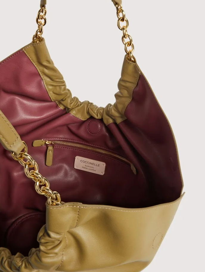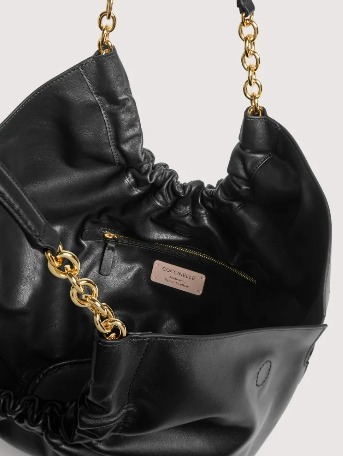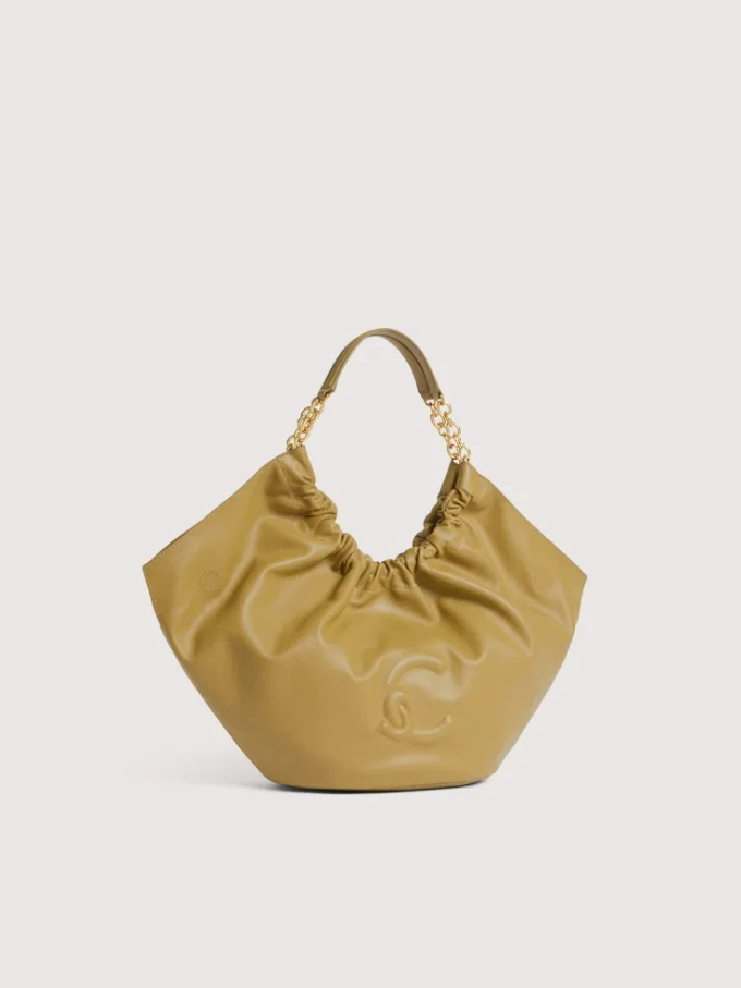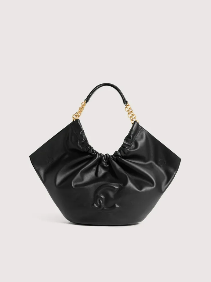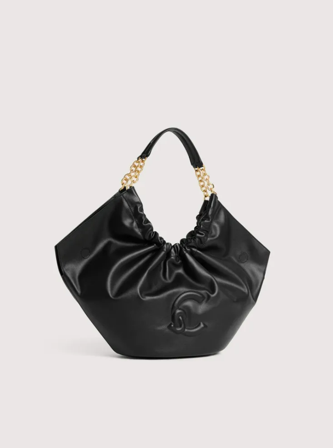Eleganza ribelle in forma di borsa. La pelle liscia accoglie una chiusura magnetica che unisce funzionalità e raffinatezza, mentre il dettaglio logo C-Me in alta frequenza firma un design contemporaneo e deciso. Il manico in catena con inserto pelle rompe gli schemi tradizionali, creando un contrasto affascinante tra durezza e morbidezza. La tasca interna con zip offre protezione intelligente, e la galvanica gold aggiunge un tocco di lusso senza ostentazione. Un accessorio per chi non segue le regole, ma le reinventa. Misure: 21x27x12 cm - 1050 gr