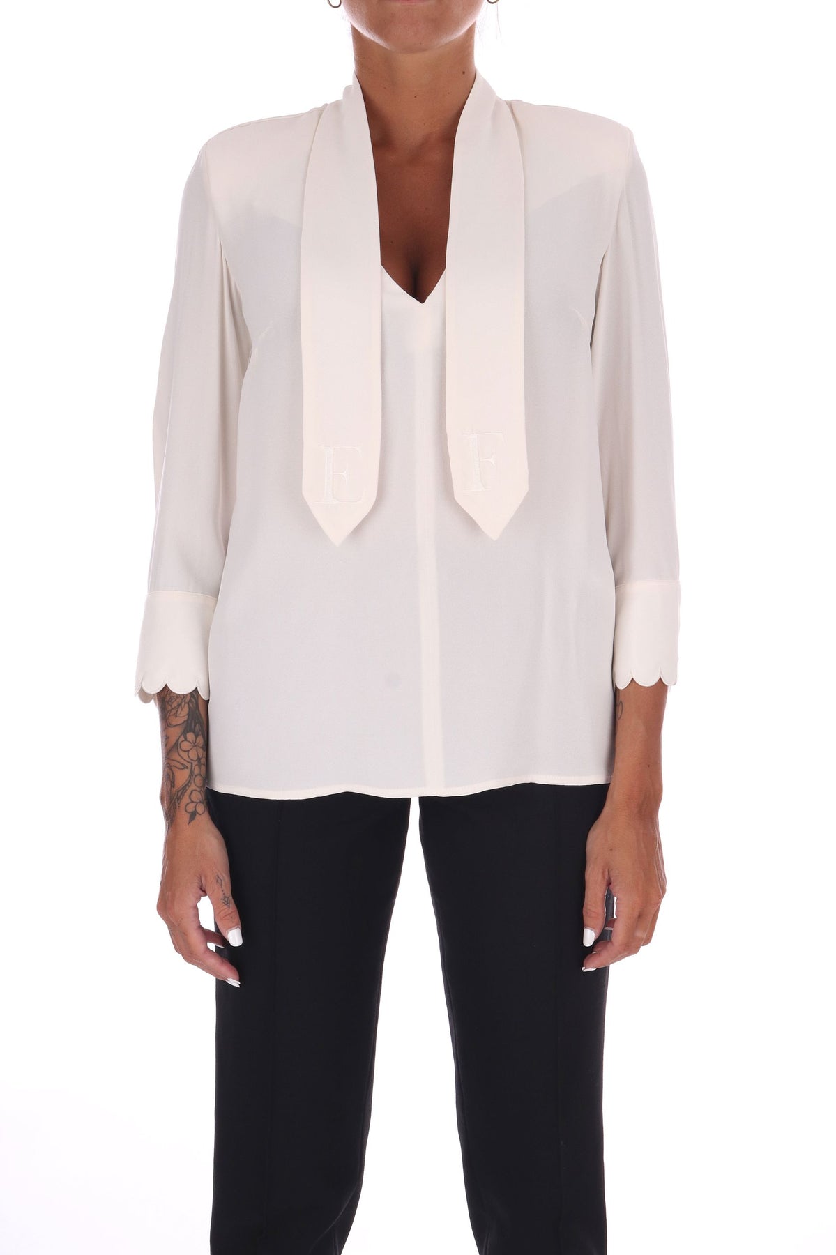 Questa camicia in georgette dalla vestibilità regular unisce delicatezza e stile raffinato. Lo scollo con fusciacca in tono, ricamata con logo alle estremità, aggiunge un dettaglio elegante e distintivo. I polsi smerlati completano il design con un tocco di morbidezza, mentre i bottoni in metallo dorato con logo impreziosiscono ulteriormente il capo, rendendolo perfetto per chi cerca un equilibrio tra raffinatezza e personalità.