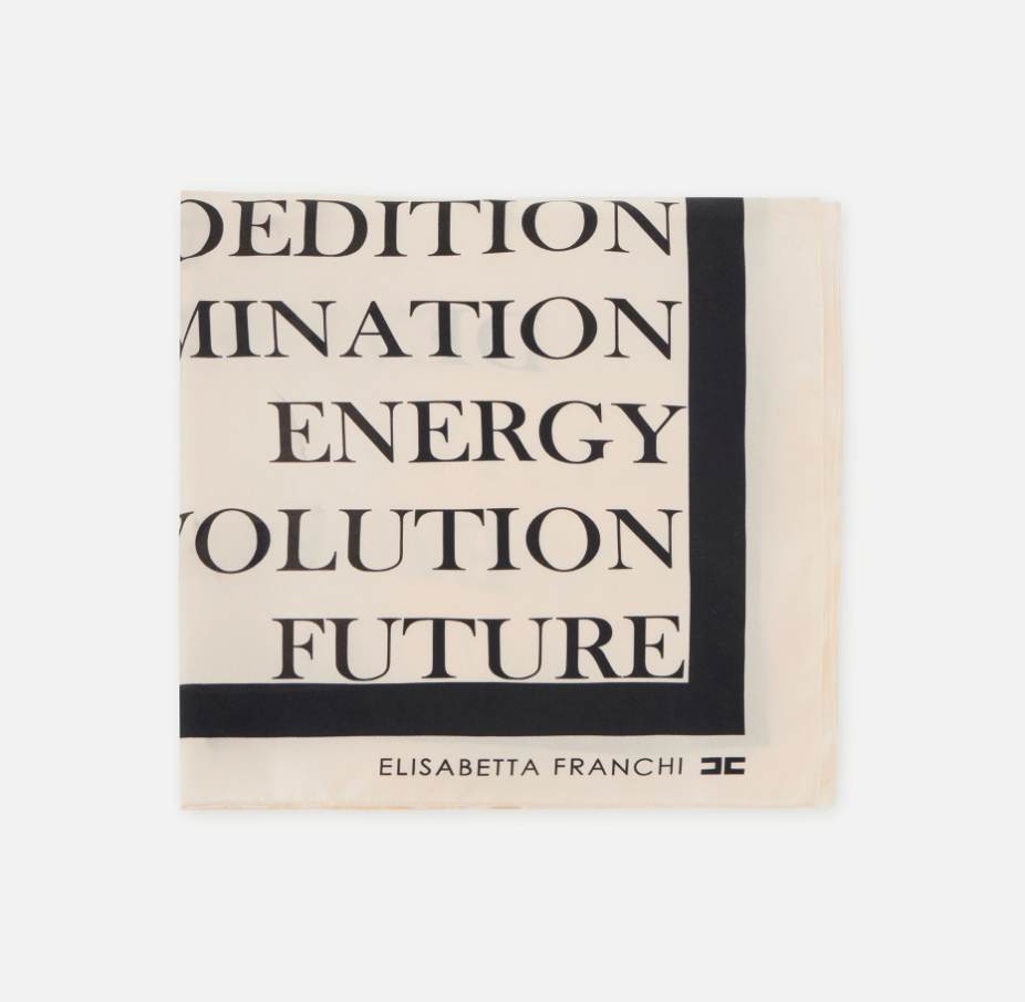 Foulard in pura seta che cattura lo sguardo con un lettering ispirazionale audace e deciso. La stampa a contrasto trasforma questo accessorio classico in una dichiarazione di stile contemporaneo. Perfetto per chi non teme di esprimere la propria personalità con eleganza, questo quadrato di seta aggiunge carattere a qualsiasi look, dal casual al sofisticato. Un pezzo versatile che trasforma ogni outfit in un'affermazione di forza e consapevolezza.