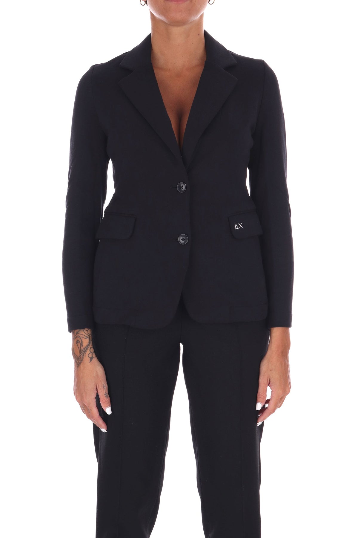 Giacca slim in felpa con chiusura monopetto e bottone ben visibile, arricchita da patte applicate sul davanti per un tocco di stile distintivo.
