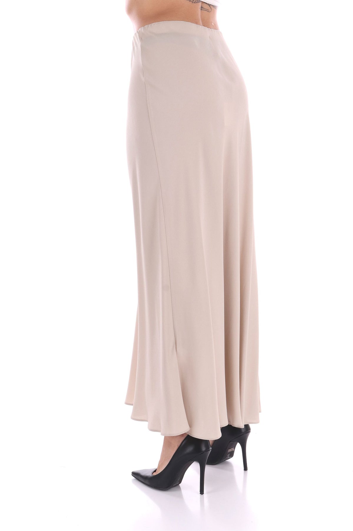 Gonna lunga in crepe de chine, un blend raffinato di acetato e seta che assicura fluidità e eleganza ad ogni movimento. Il taglio morbido e avvolgente crea una silhouette sofisticata, mentre la chiusura con zip laterale sul fianco sinistro offre praticità e un dettaglio di design ricercato. Ideale per occasioni speciali o per chi desidera un capo versatile che passa dal giorno alla sera con naturalezza. Un pezzo essenziale per un guardaroba consapevole e di qualità. La modella indossa una Tag 40 italiana Collezione P/E26