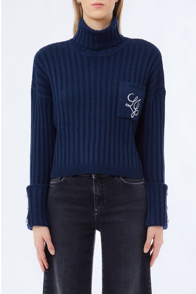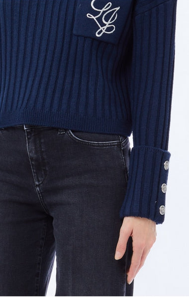 Prestazioni nascoste sotto eleganza pura. Questo maglione Liu Jo sfida i compromessi con una maglia elasticizzata che si adatta perfettamente al corpo, garantendo libertà di movimento senza sacrificare la definizione. La lana naturale respira con te, regolando la temperatura corporea in ogni stagione e mantenendo il comfort assoluto. Un capo intelligente per chi rifiuta di scegliere tra stile audace e funzionalità consapevole. La modella indossa una Tag S