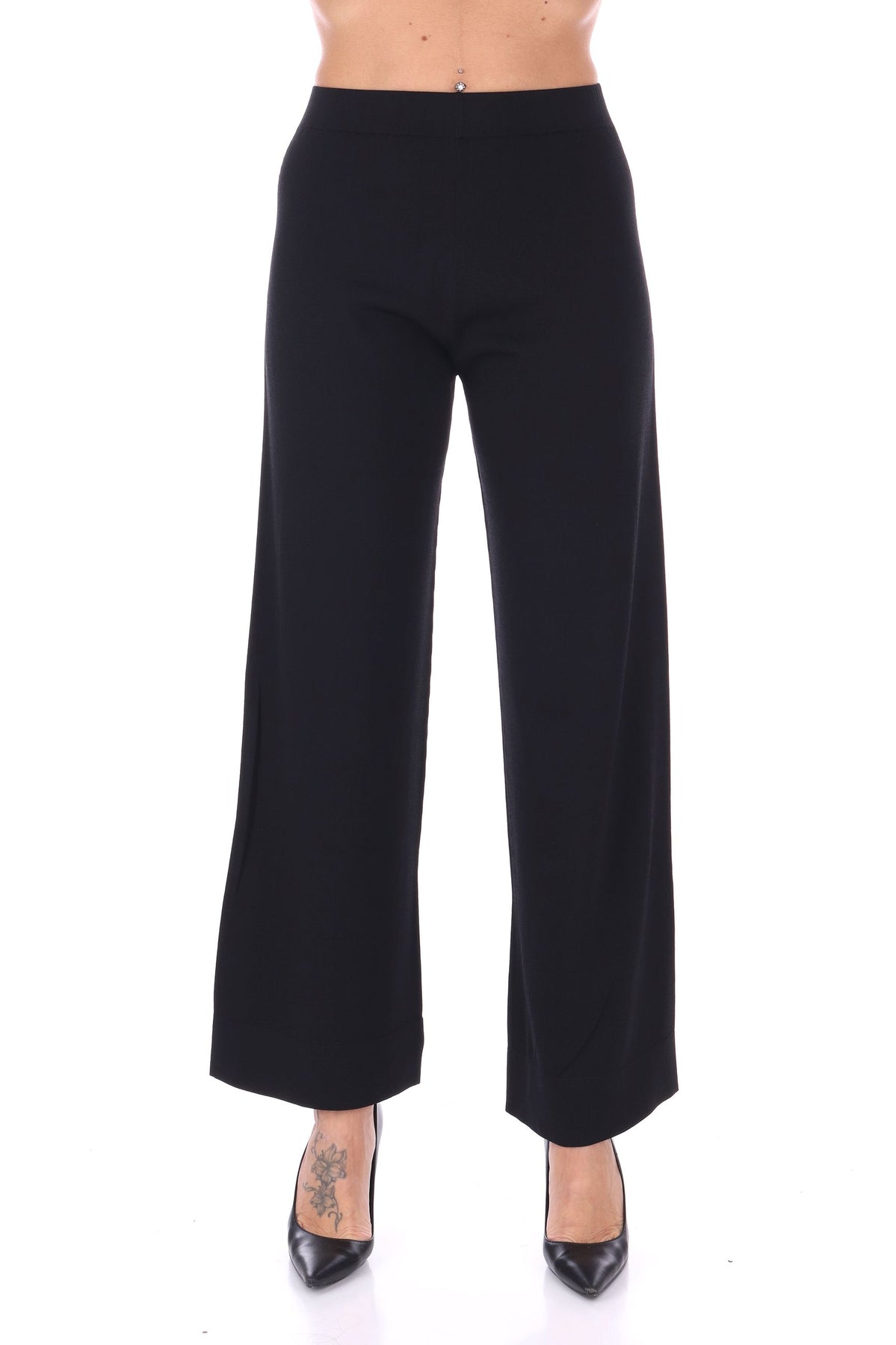 Pantalone ampio che incarna il coraggio di chi sceglie la libertà di movimento. La viscosa stretch avvolge il corpo con morbidezza e elasticità, permettendo gesti fluidi e naturali. I bordi double al fondo e in vita aggiungono un dettaglio grafico che trasforma la semplicità in dichiarazione di stile. Un capo che celebra la silhouette senza confini, perfetto per chi osa indossare la propria personalità con sicurezza e raffinatezza.