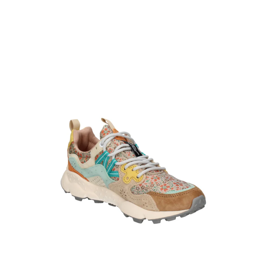 Yamano è la sneaker che sfida le convenzioni: audace fusione di femminilità e spirito avventuriero. Realizzata in tessuto tecnico con inserti in suede multicolor, presenta l'iconico occhiello sagomato a forma di tarassaco che cattura lo sguardo. Lacci trek e occhielli rinforzati garantiscono solidità, mentre la soletta in sughero naturale antibatterico avvolge il piede in comfort assoluto. La suola in gomma ultra leggera con battistrada dentellato domina qualsiasi terreno. Perfetta per chi non sceglie tra stile active e glamour: Yamano è la sneaker che vive su entrambi i mondi. Collezione P/E26