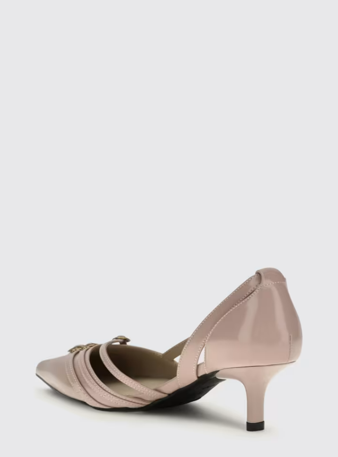 Décolleté con tacco basso che incarna il coraggio del design contemporaneo, realizzata in tessuto effetto pelle abrasivata dalla texture decisa. La silhouette affusolata con punta sfilata si rivela attraverso cinturini sottili che si intrecciano sul collo del piede, creando un equilibrio perfetto tra sostegno e sensualità. La fibbia gioiello in metallo dorato, riccamente decorata, cattura la luce con eleganza, mentre le borchie sulla fascia frontale infondono un'energia rock che sfida la convenzione. Una scarpa che non teme di essere notata, perfetta per chi vuole esprimere personalità senza rinunce. Collezione P/E26